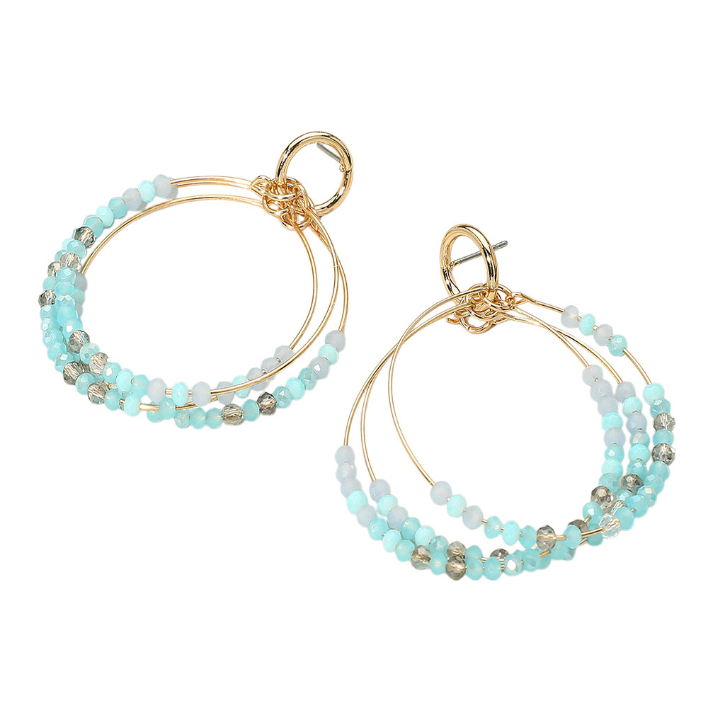 Details • Size : 1.75" X 2" • Post Back • Bring effortless elegance to your style with layered beaded hoop earrings featuring delicate strands of faceted beads. Lightweight and versatile, these hoops offer a chic blend of shimmer and movement, perfect for casual wear, evenings out, or everyday sophistication. • Lead and Nickel Compliant