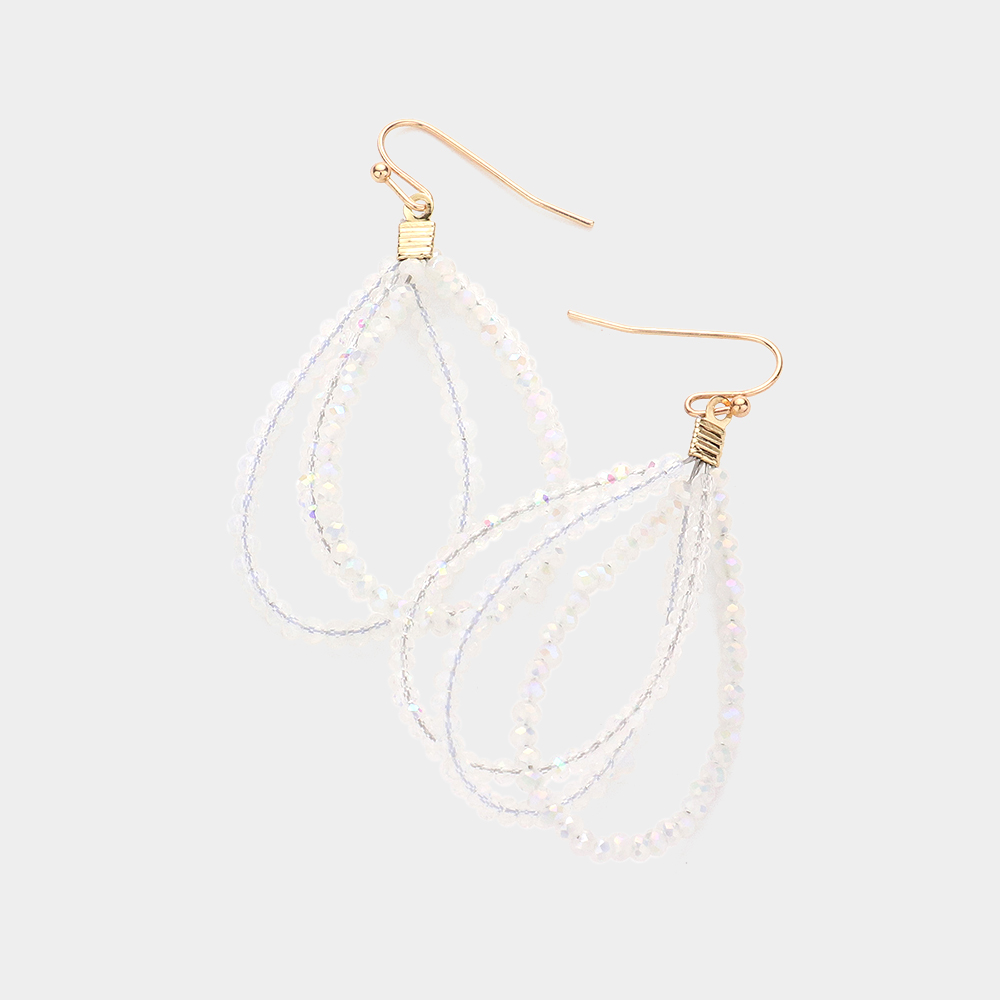 Faceted Beaded Triple Open Teardrop Layered Dangle Earrings