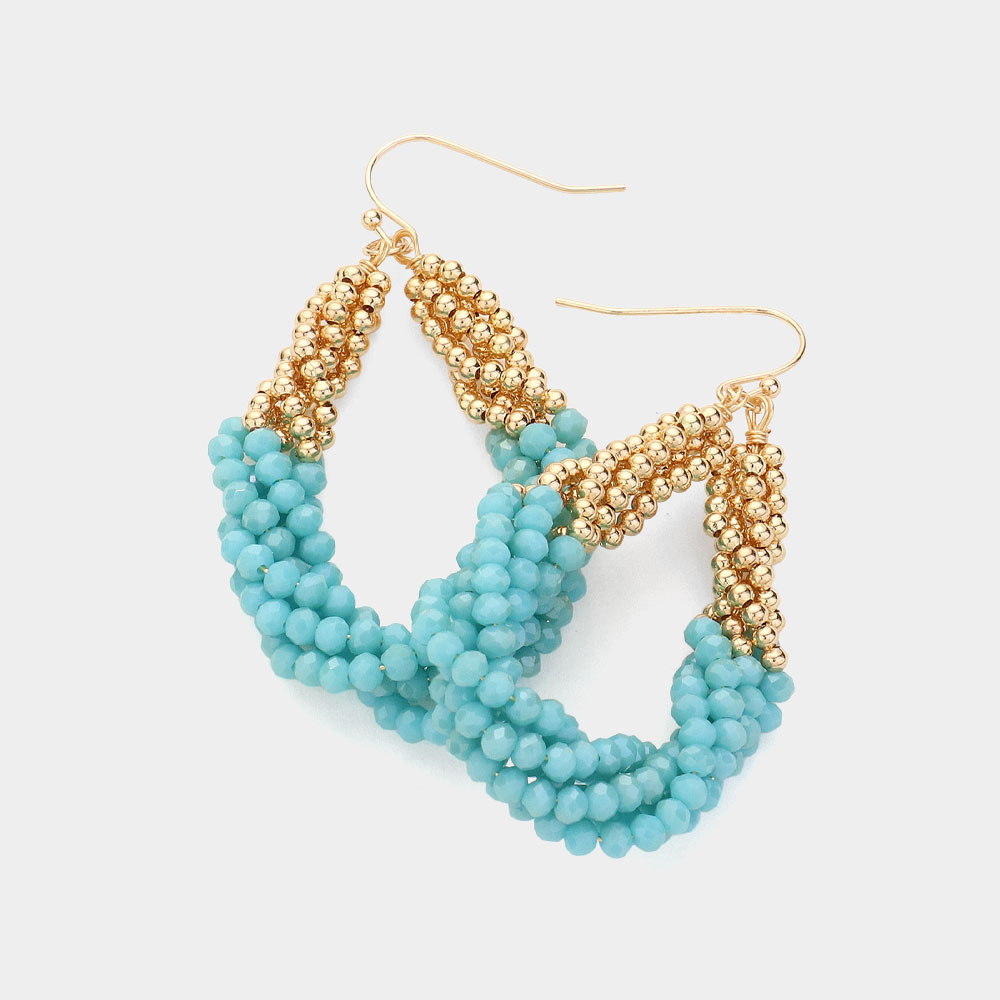 Faceted Beaded Twisted Open Teardrop Dangle Earrings