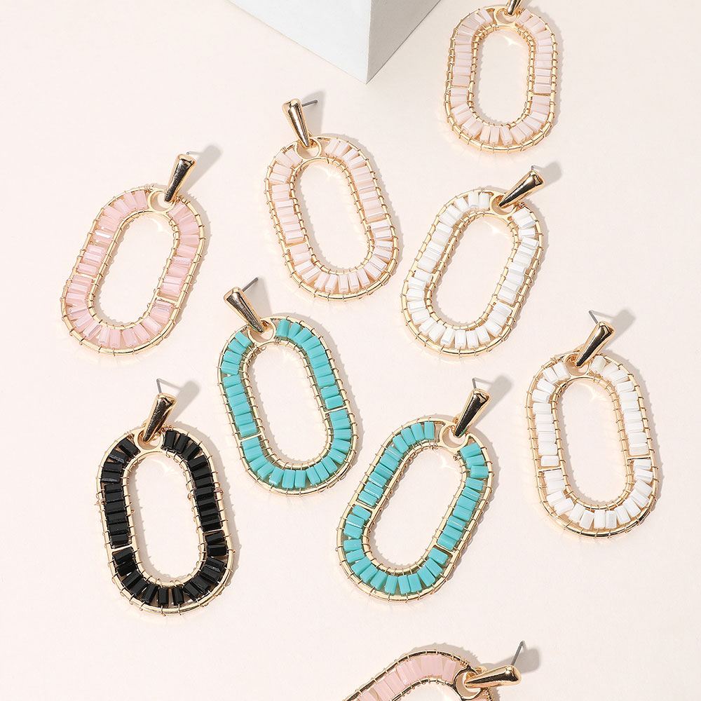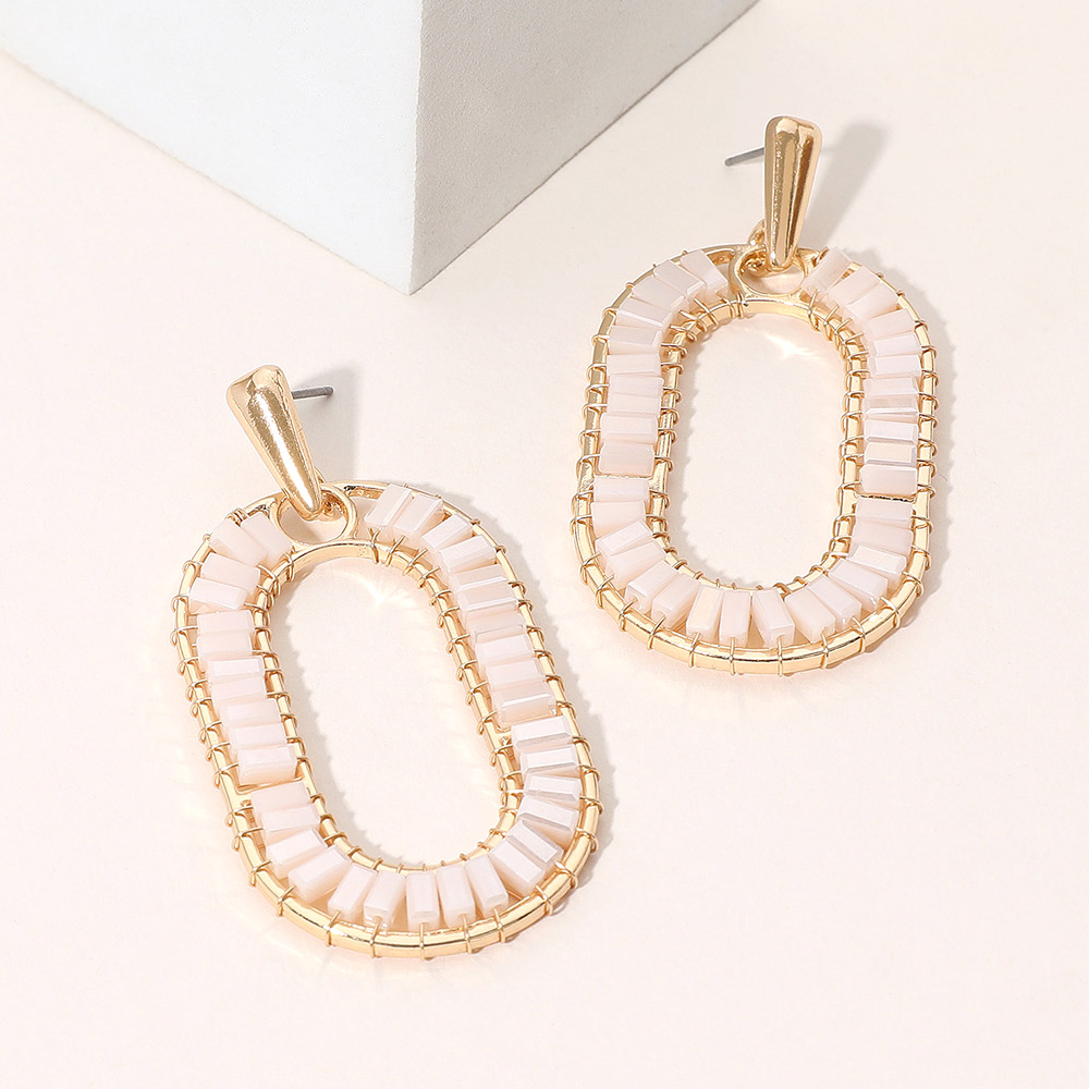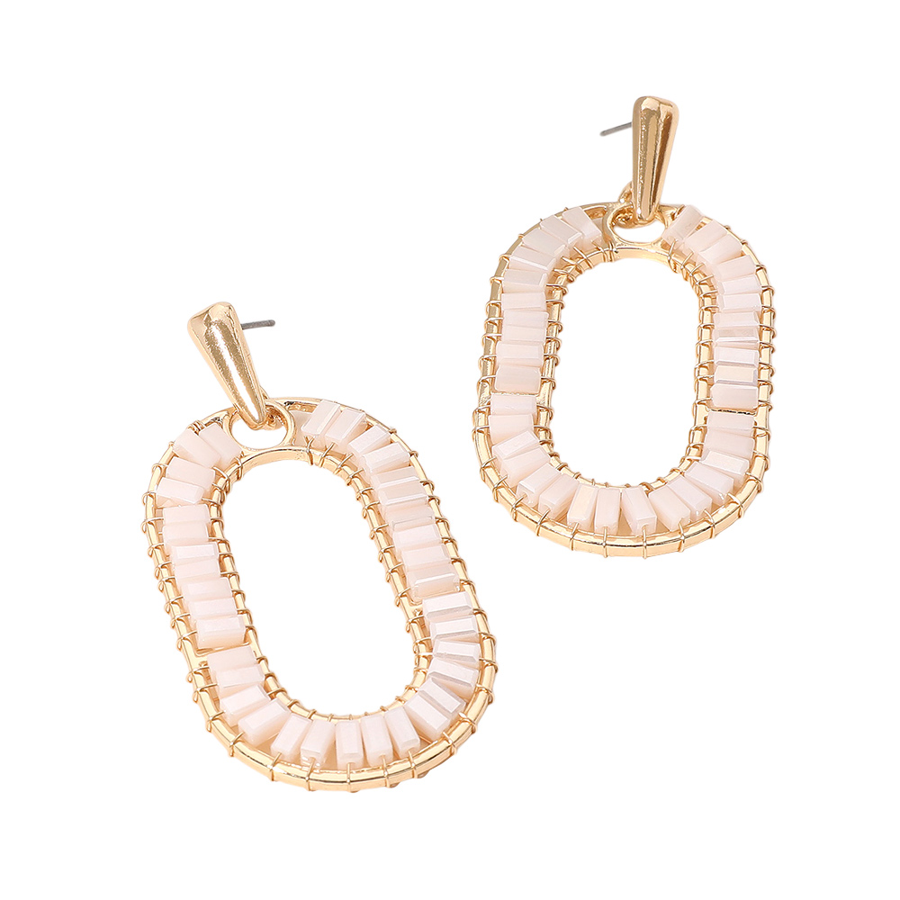 Faceted Beaded Wrapped Open Oval Dangle Earrings