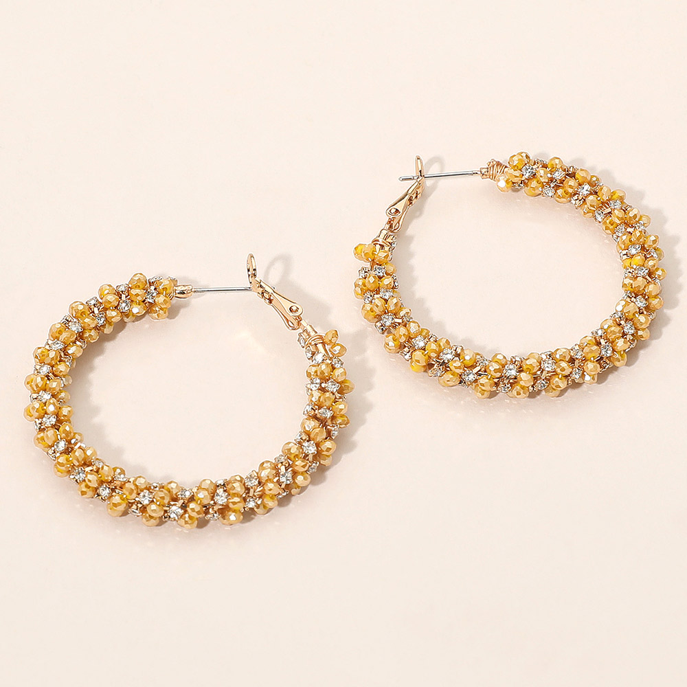 Details • Size : 1.75" L • Omega Back • Elevate your style with these beaded hoop earrings featuring shimmering accents. Bold yet lightweight, they bring sparkle and charm to any look, perfect for parties, date nights, or everyday wear with a touch of glamour. • Lead and Nickel Compliant