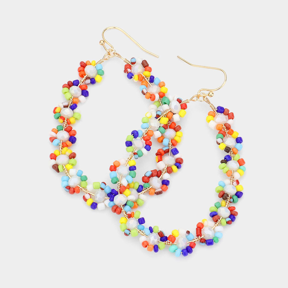Faceted Beads Stones Wrapped Teardrop Dangle Earrings