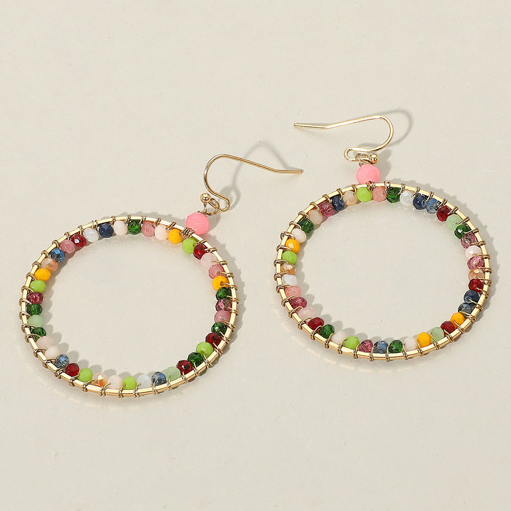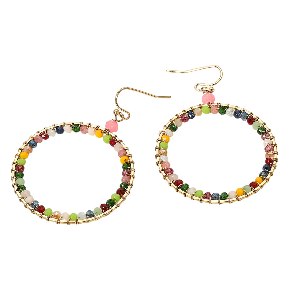 • Lightweight hoop earrings featuring a wire-wrapped design with vibrant beaded accents. A playful and eye-catching accessory perfect for everyday or festive wear.