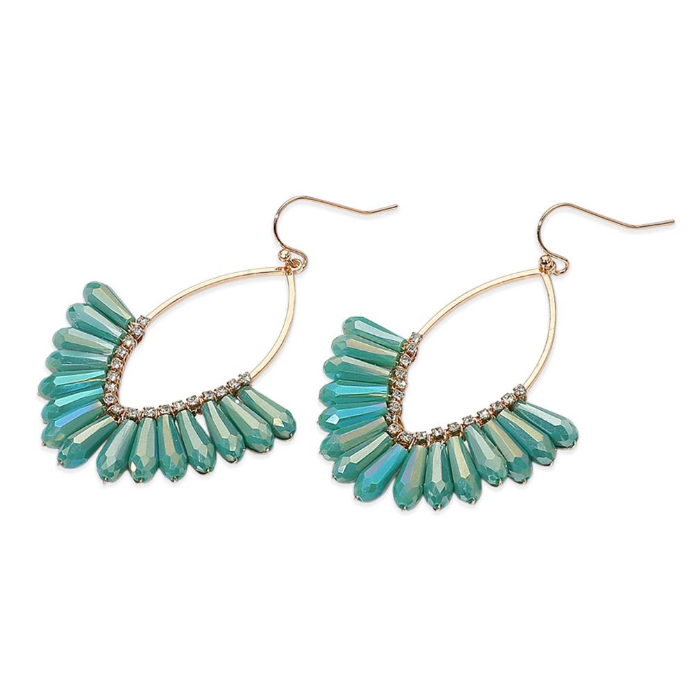 • Elegant fan-style earrings featuring teardrop beads and a sparkling rhinestone curve. A bold yet graceful accessory perfect for events, parties, or adding flair to everyday outfits.