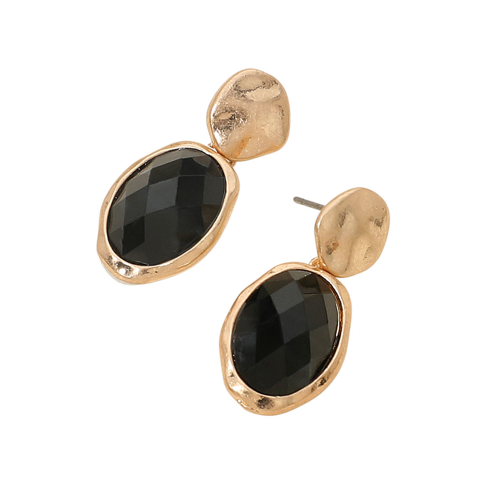 • These faceted oval drop earrings feature a striking gemstone-inspired center set within an organic, sculpted metallic frame. Versatile and lightweight, they add polished sophistication to everyday outfits or evening looks, making them a standout accessory for modern, elegant style.