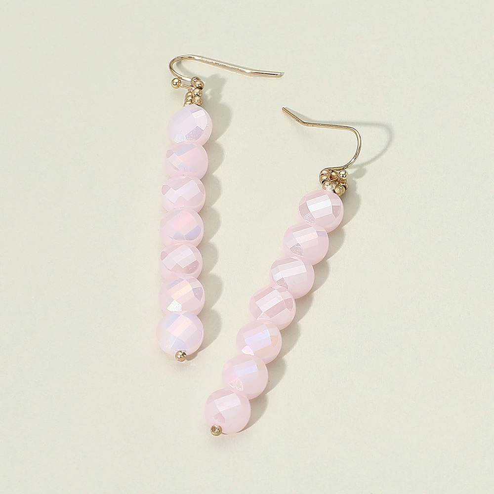 Details • Size : 0.3" X 2.75" • Fish Hook Back • These faceted beaded drop earrings shimmer beautifully with every movement, offering a chic balance of elegance and simplicity. Lightweight and versatile, they are the perfect accessory to complement both casual outfits and evening looks with timeless sophistication. • Lead and Nickel Compliant