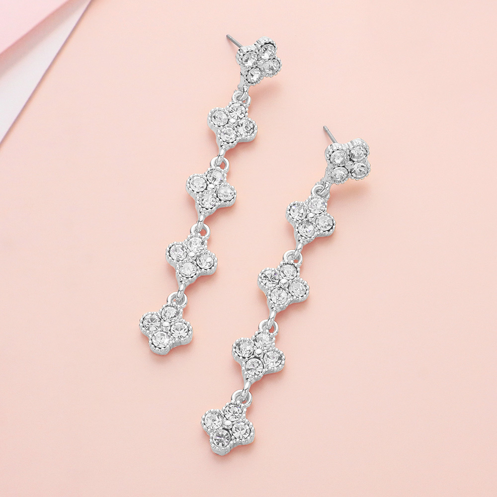 Teardrop CZ Stone Cluster Chandelier Dangle Evening Earrings