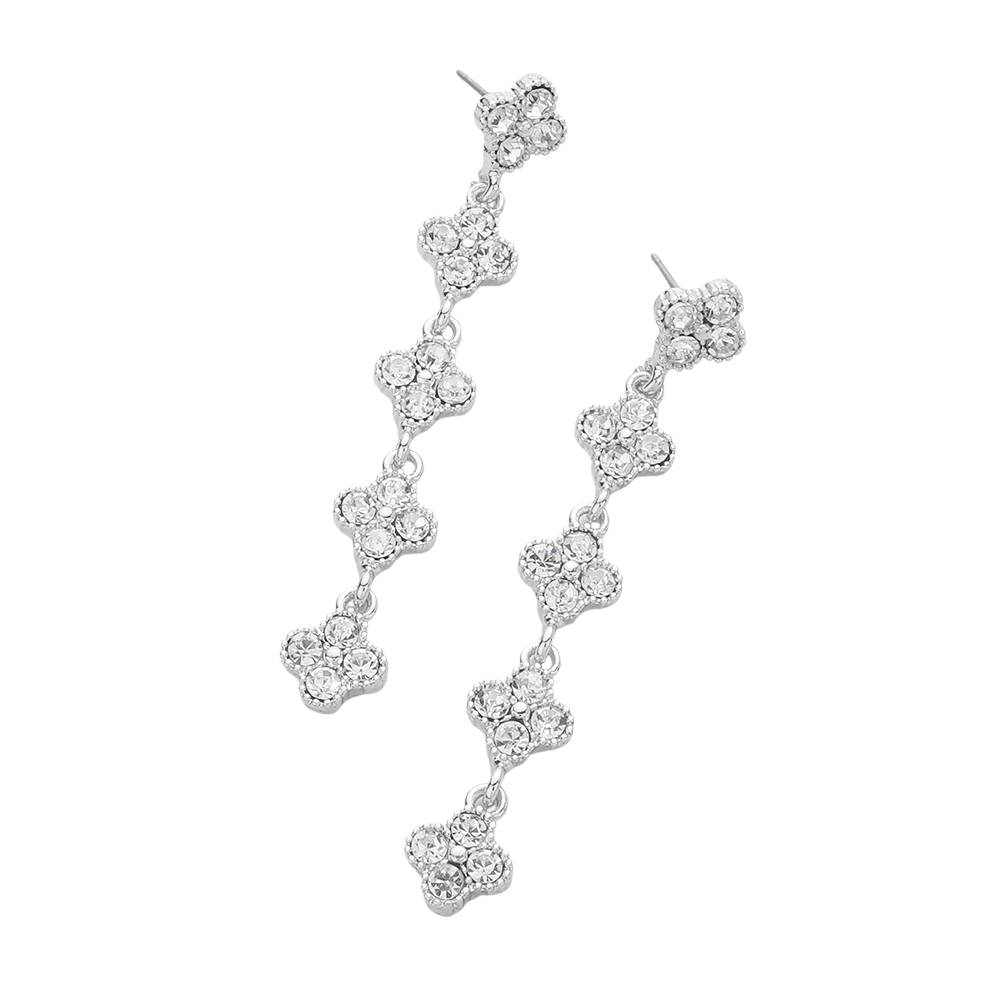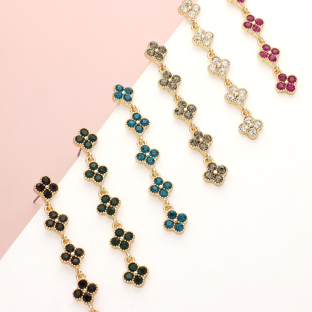 Faceted Stone Cluster Quatrefoil Link Dropdown Dangle Earrings