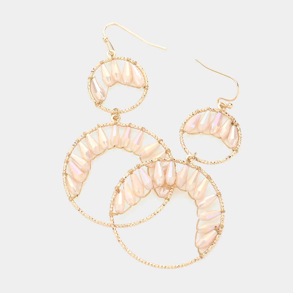 Faceted Teardrop Bead Wrapped Double Open Metal Circle Link Dangle Earrings