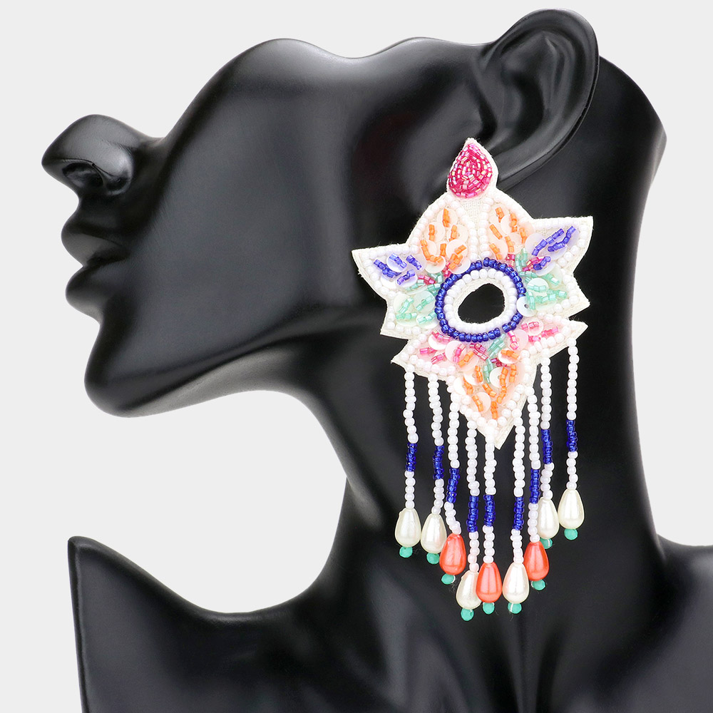 Faux Leather Back Boho Seed Beaded Dangle Earrings