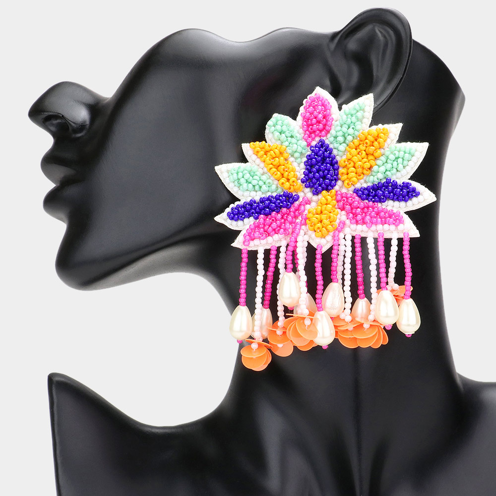 Faux Leather Back Boho Seed Beaded Dangle Earrings
