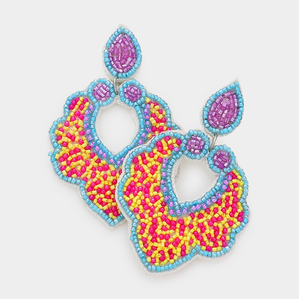 Faux Leather Back Seed Beaded Petal Dangle Earrings