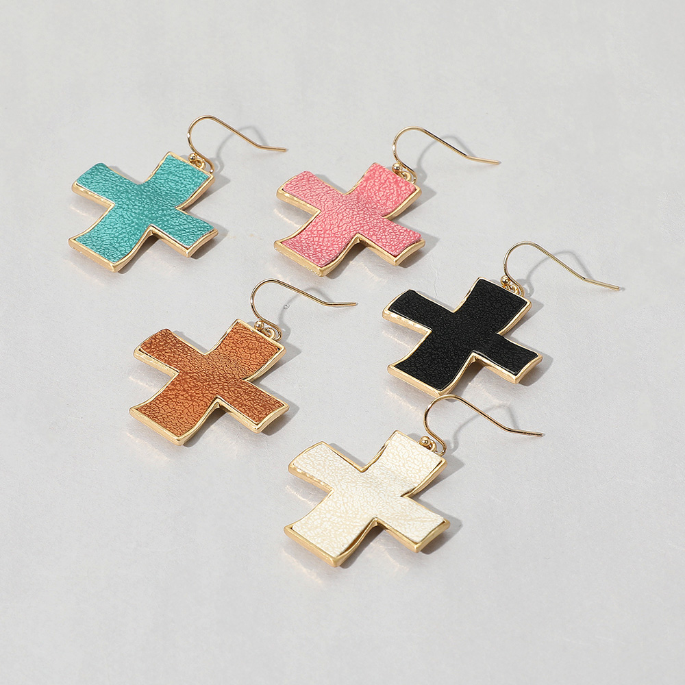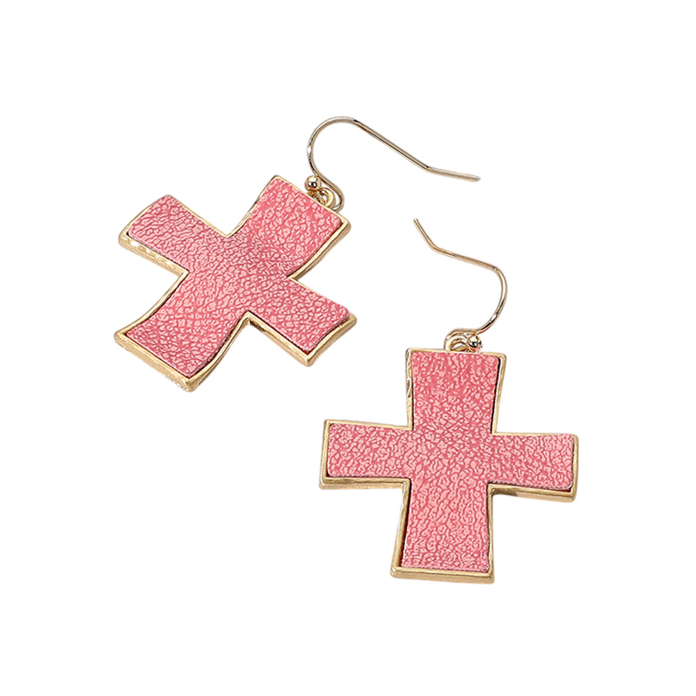 Faux Leather Cross Dangle Earrings Faux Leather Cross Dangle Earrings Faux Leather Cross Dangle Earrings