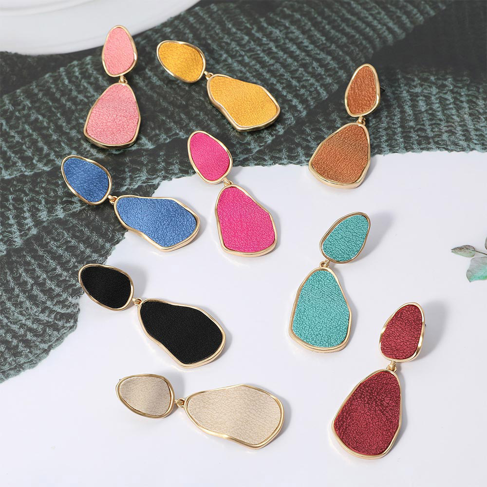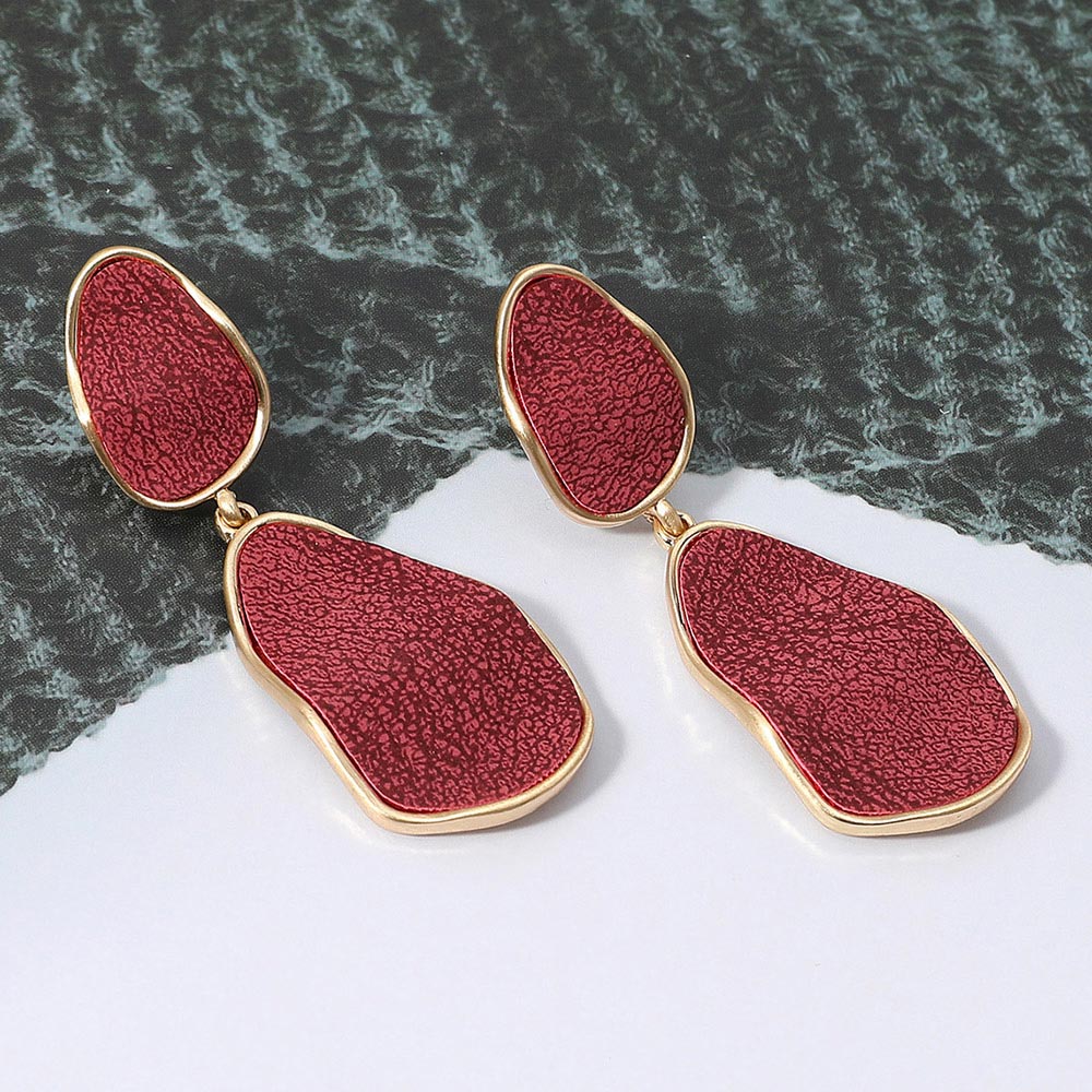 Faux Leather Metal Teardrop Dangle Earrings