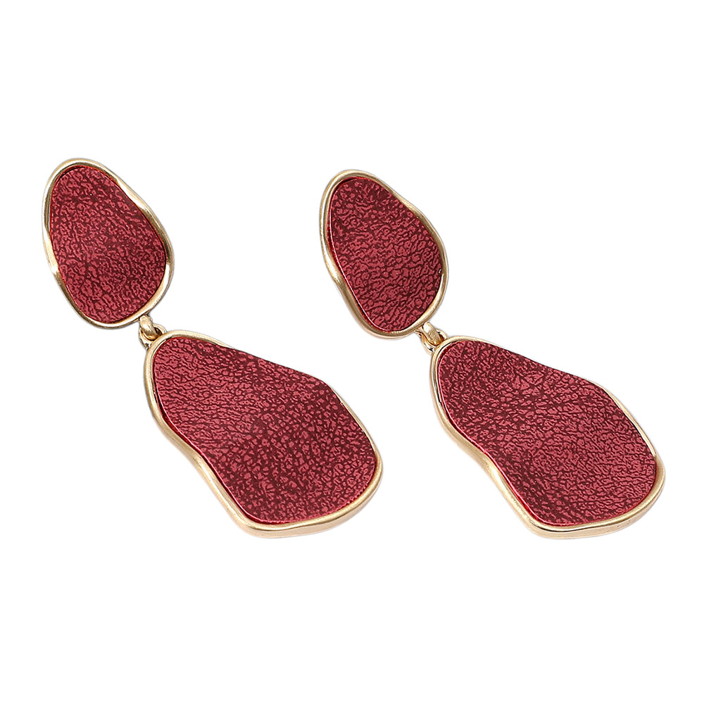 Faux Leather Metal Abstract Plate Link Dangle Earrings