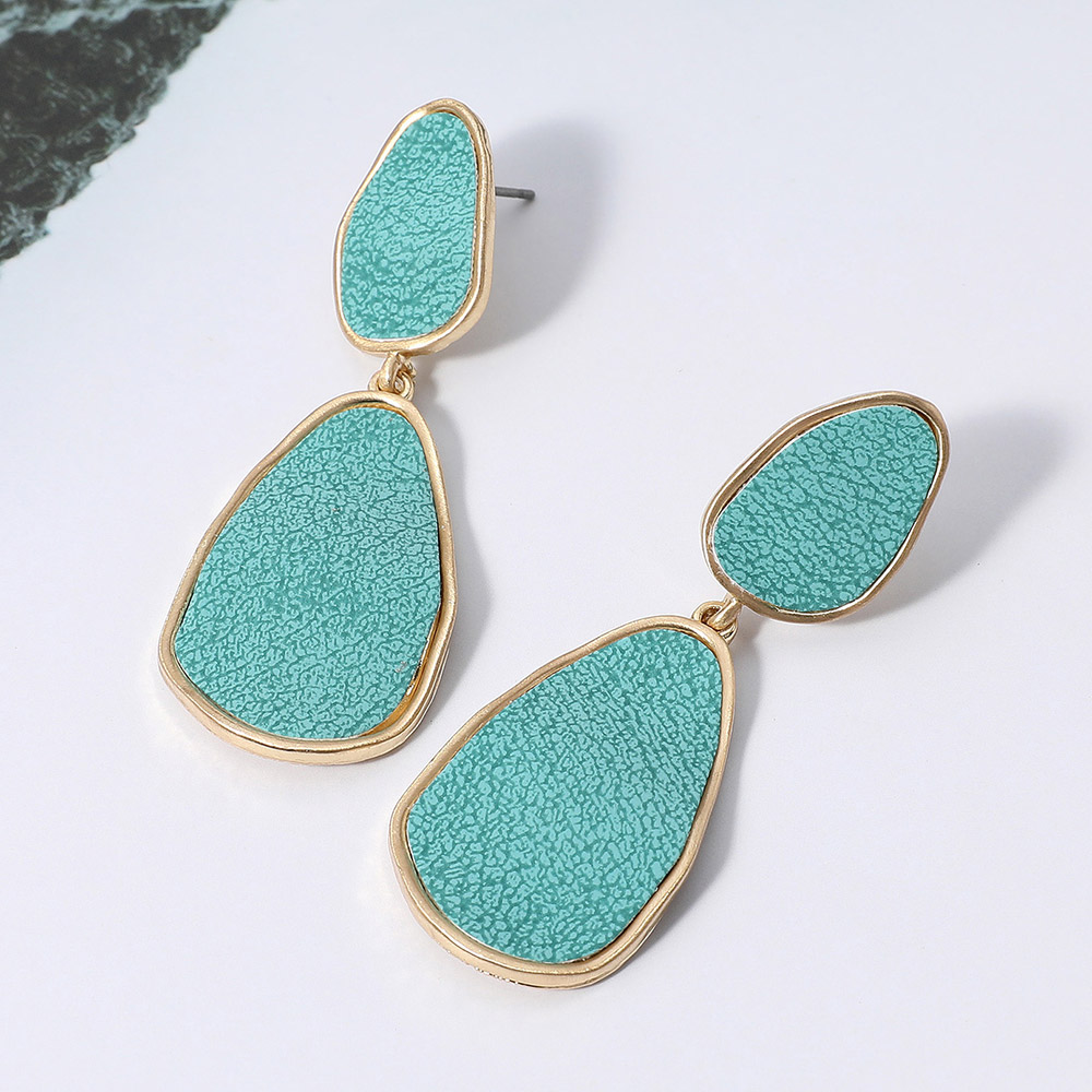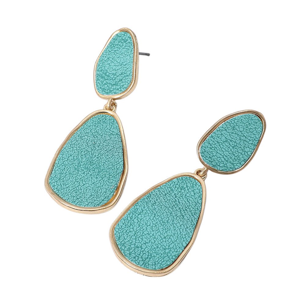 Faux Leather Metal Abstract Plate Link Dangle Earrings