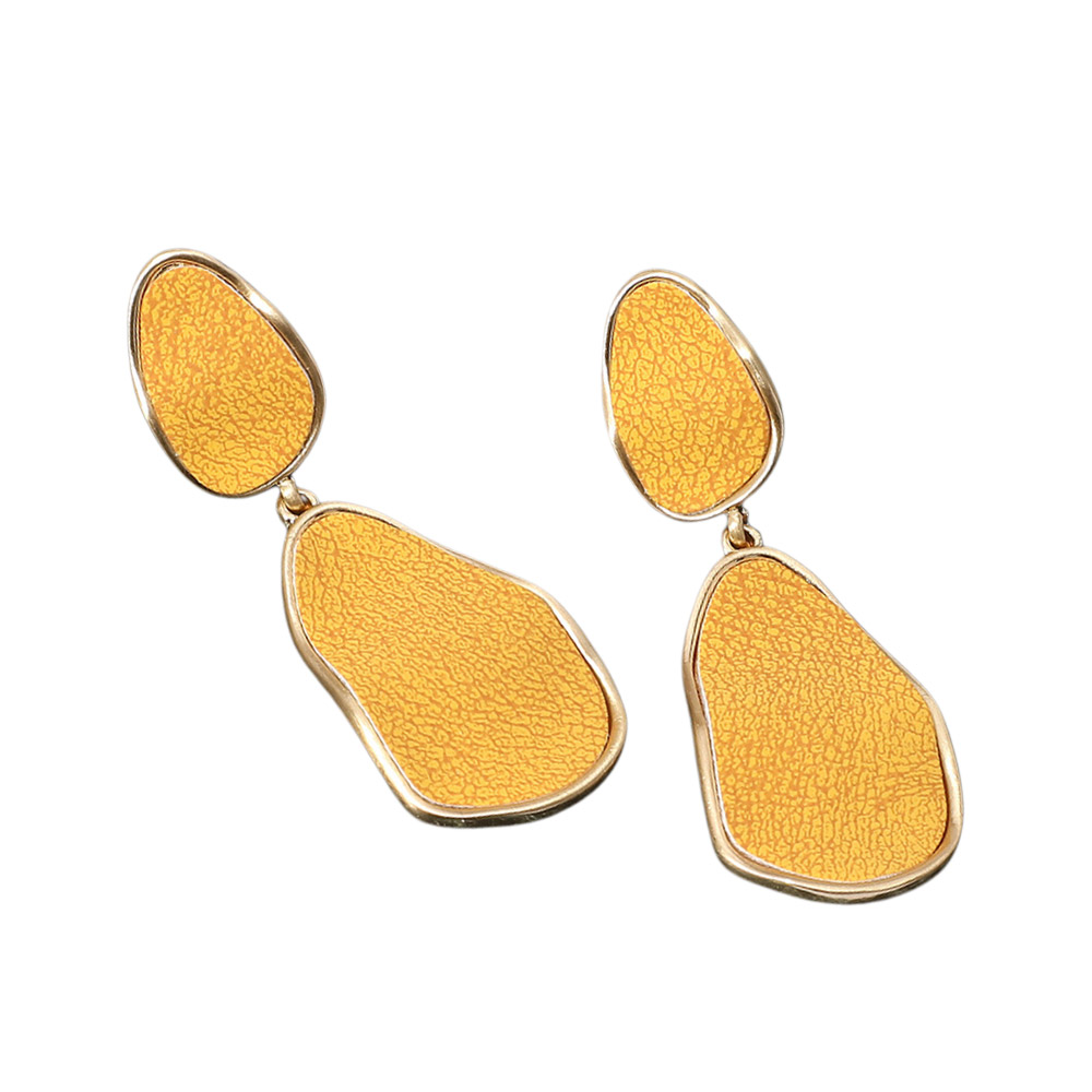 Faux Leather Metal Teardrop Dangle Earrings