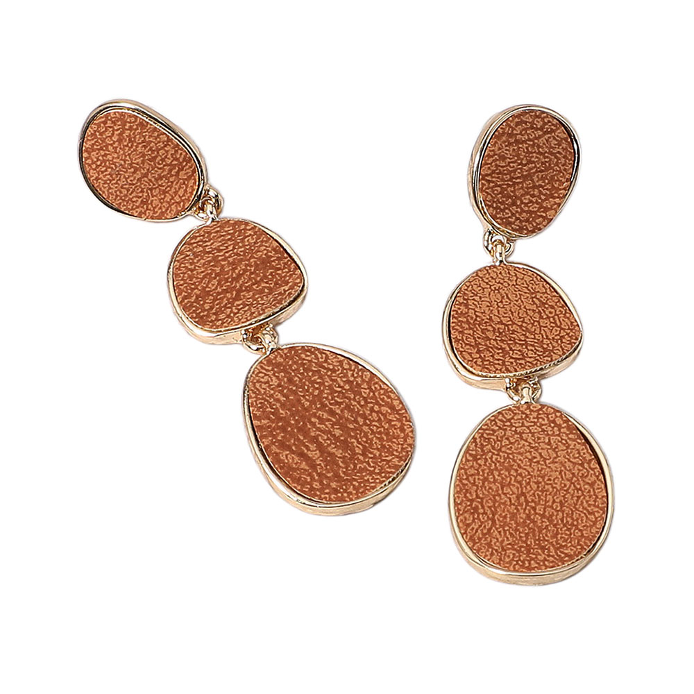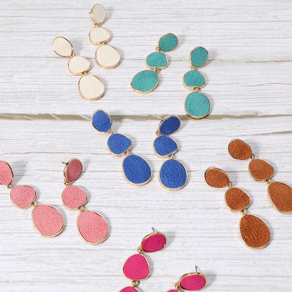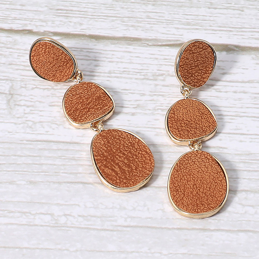 Faux Leather Metal Triple Abstract Plate Link Dangle Earrings