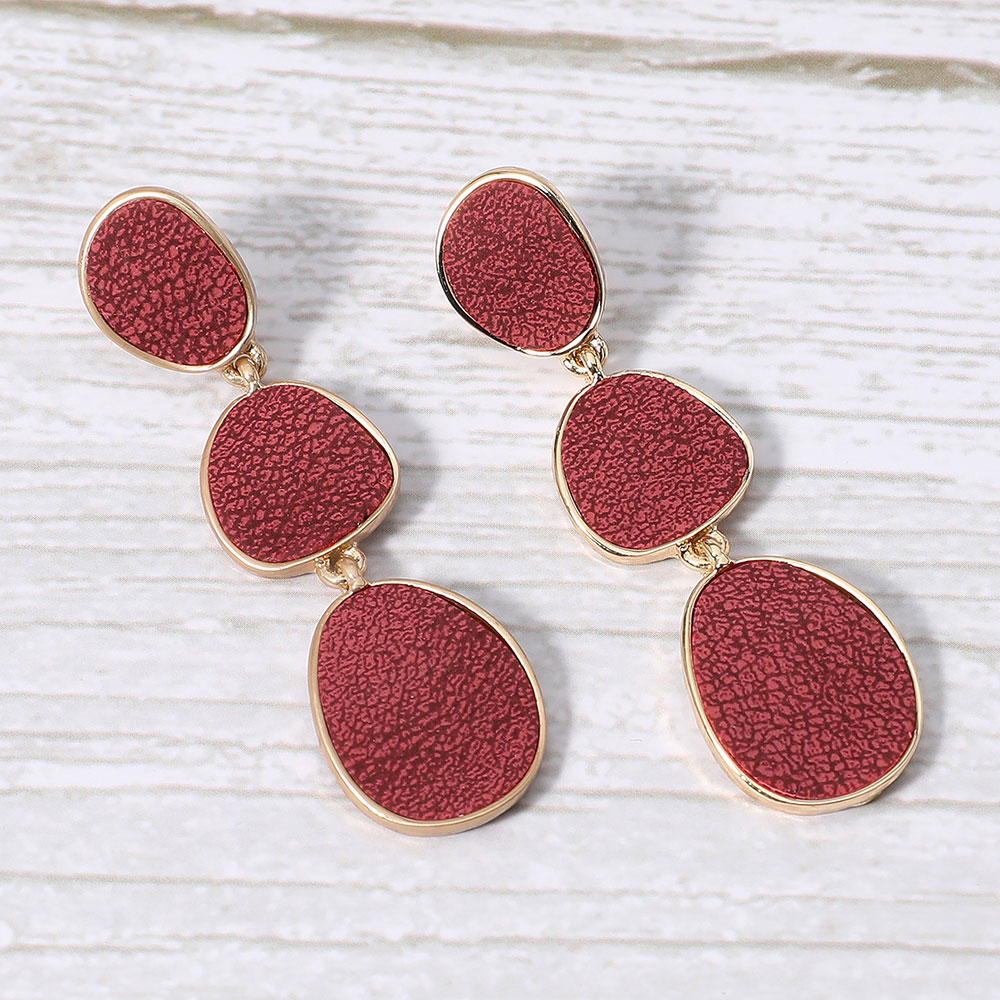 Faux Leather Metal Triple Abstract Plate Link Dangle Earrings