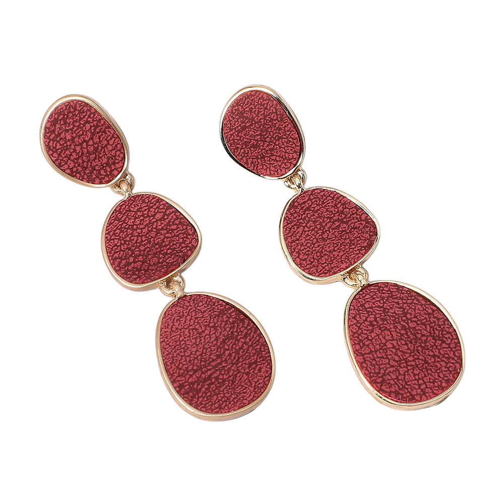 Details • Size : 0.6" X 2.3" • Post Back • Elegant dangle earrings featuring a trio of teardrop-shaped textured accents in a layered design. Lightweight and stylish, perfect for adding a statement finish to casual or evening looks. Ideal for gifting or personal wear. • Lead and Nickel Compliant