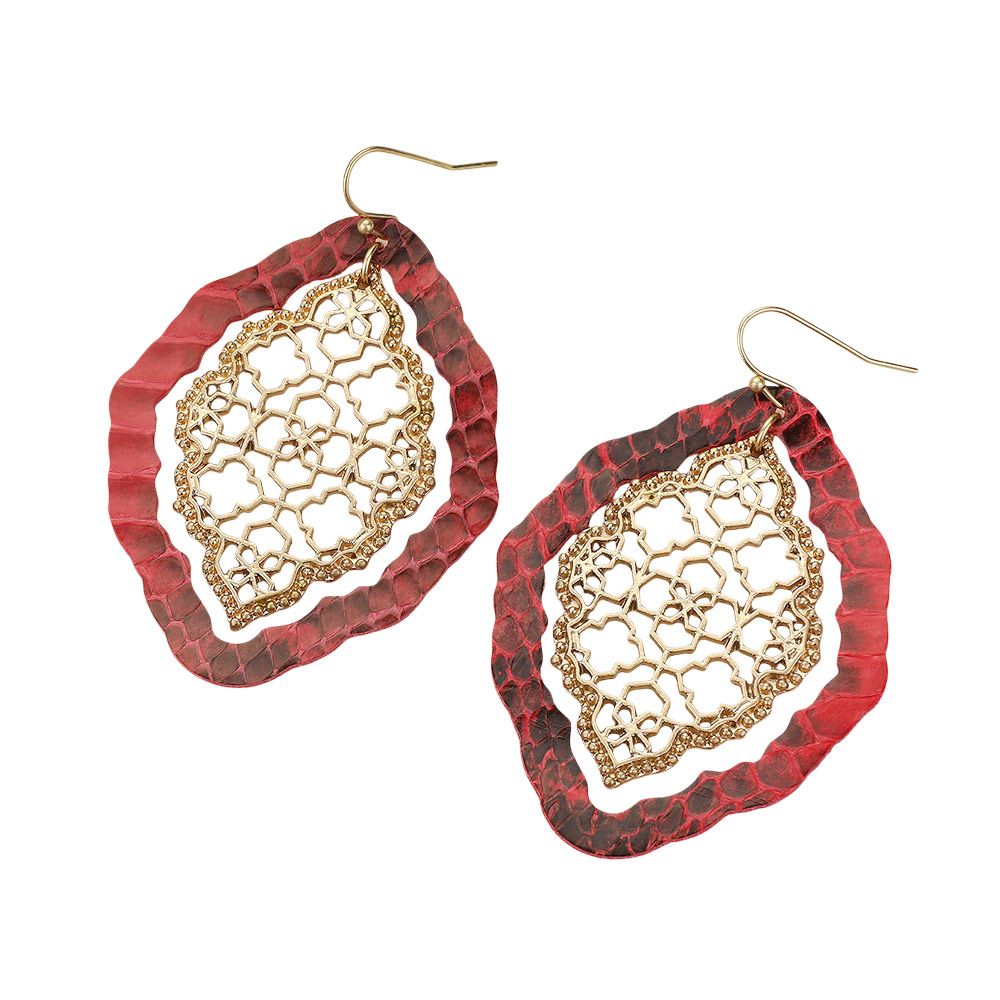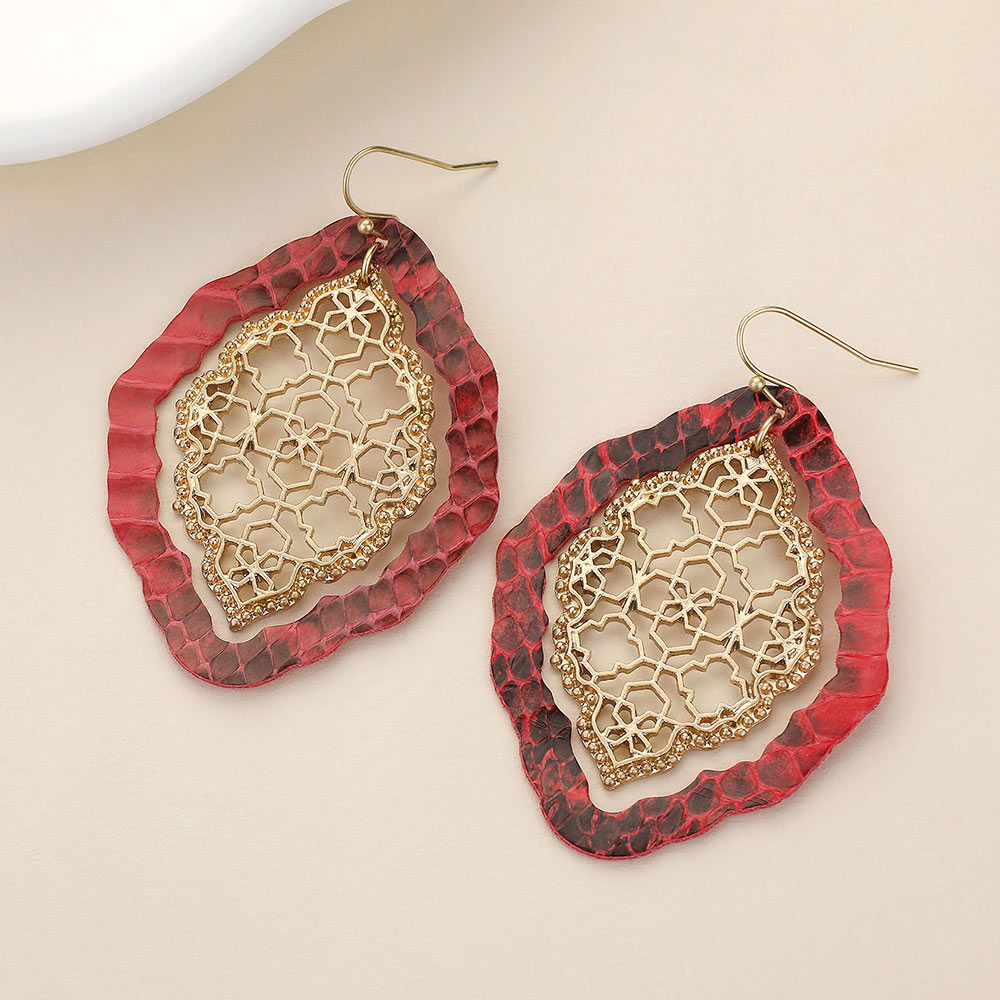 Stone Pointed Enamel Flower Open Ring Dangle Earrings