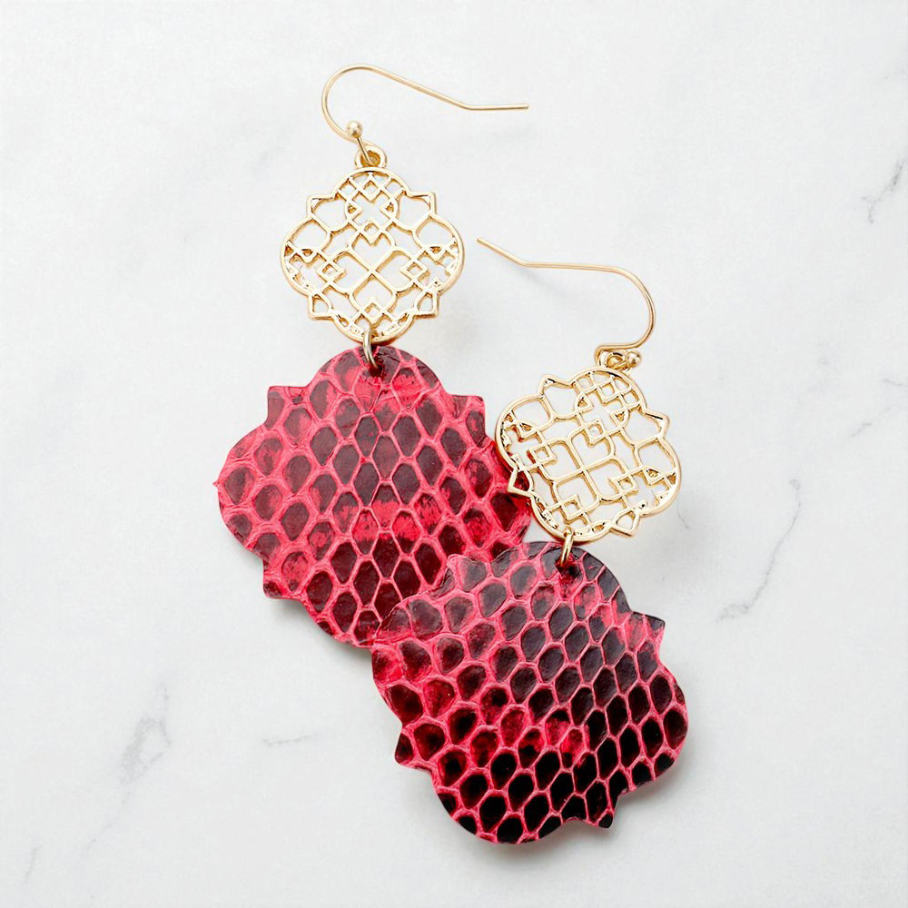 Brass Metal Filigree Tropical Leaf Dangle Earrings
