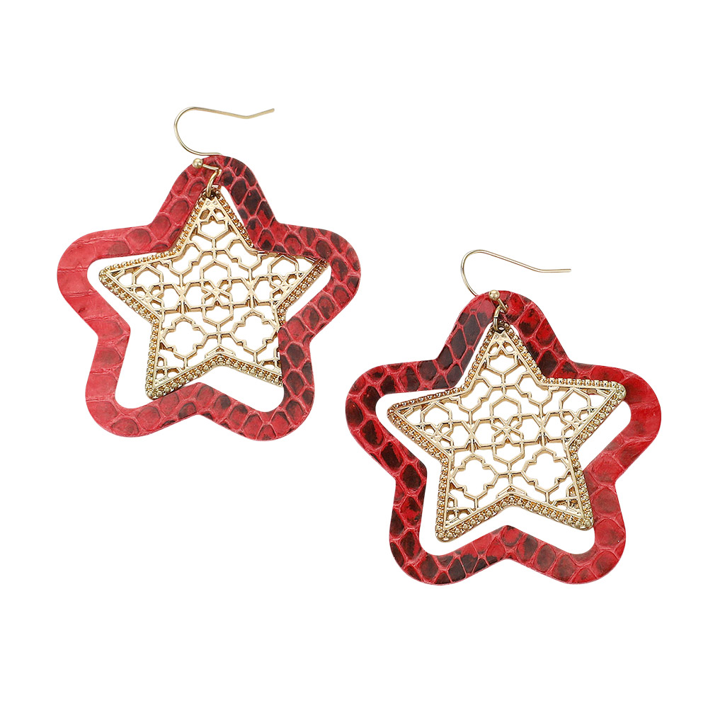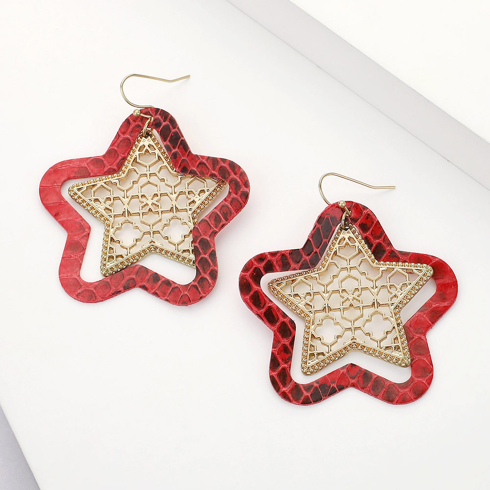 Faux Leather Moroccan Filigree Star Dangle Earrings Faux Leather Moroccan Filigree Star Dangle Earrings Faux Leather Moroccan Filigree Star Dangle Earrings