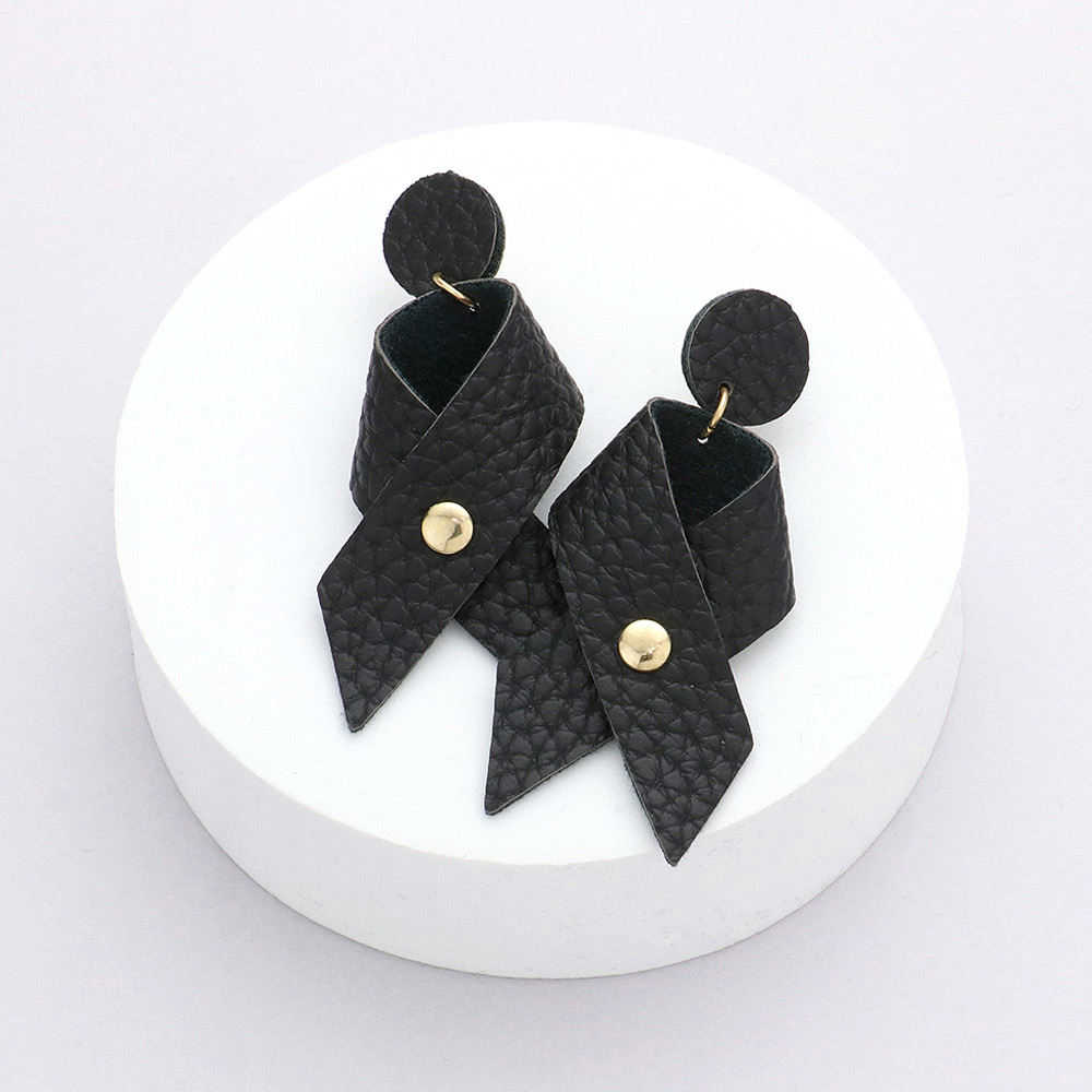 Faux Leather Ribbon Dangle Earrings Faux Leather Ribbon Dangle Earrings