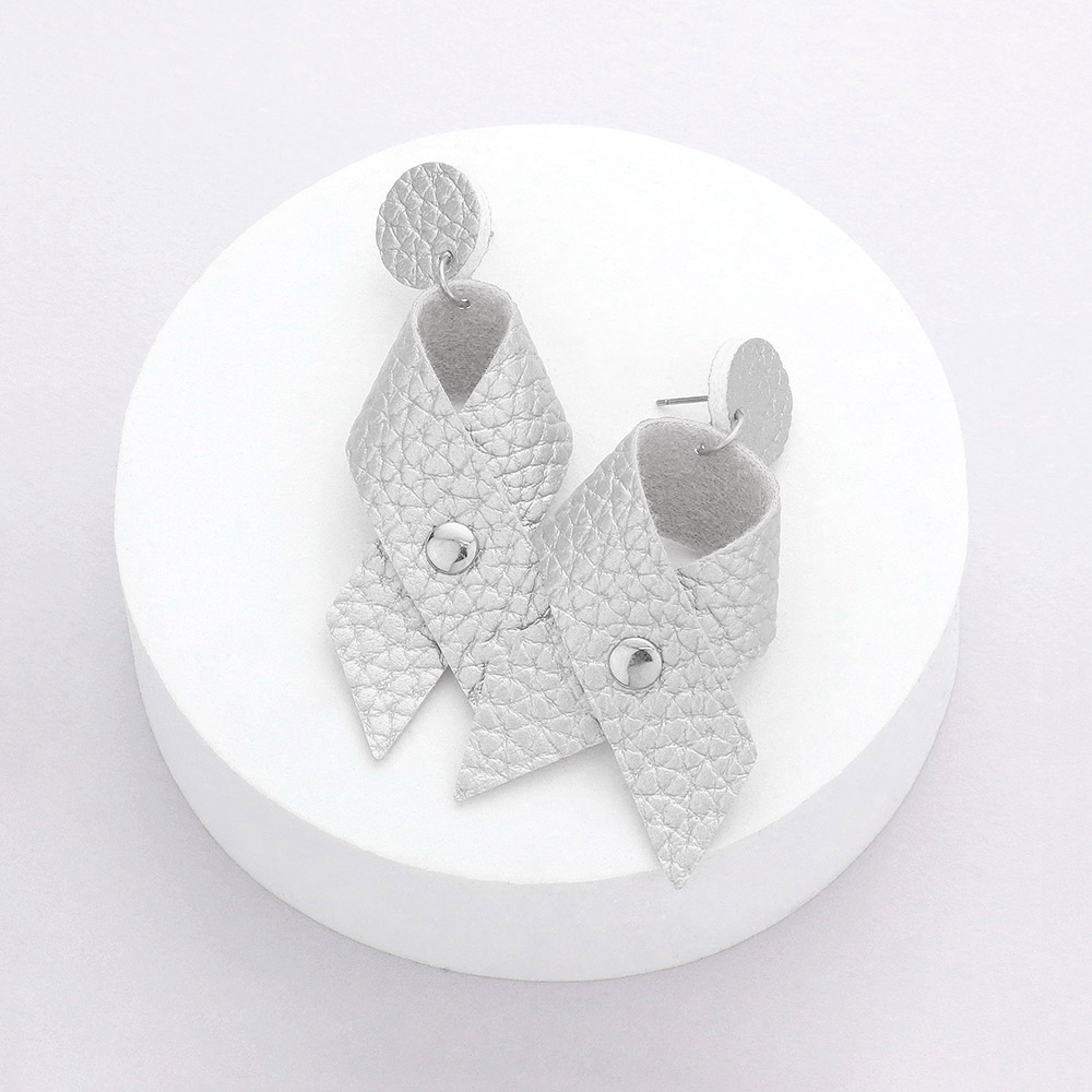 Details • Size : 1.25" X 2.75" • Post Back • Elevate your look with these modern geometric drop earrings featuring a sleek folded design and metallic stud detail. Lightweight and stylish, they make the perfect statement accessory for both casual outfits and elegant occasions.