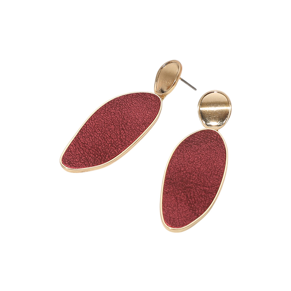 Faux Leather Wavy Marquise Plate Dangle Earrings