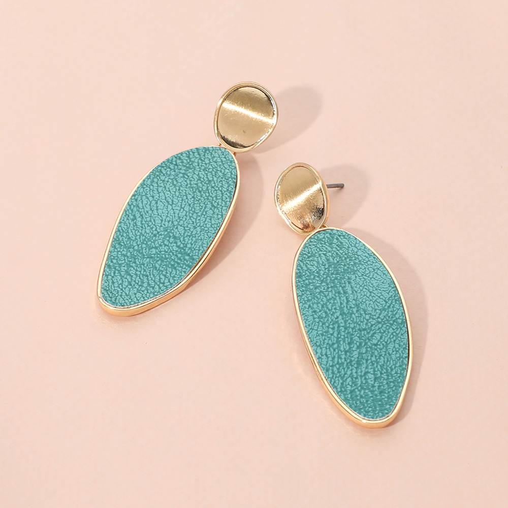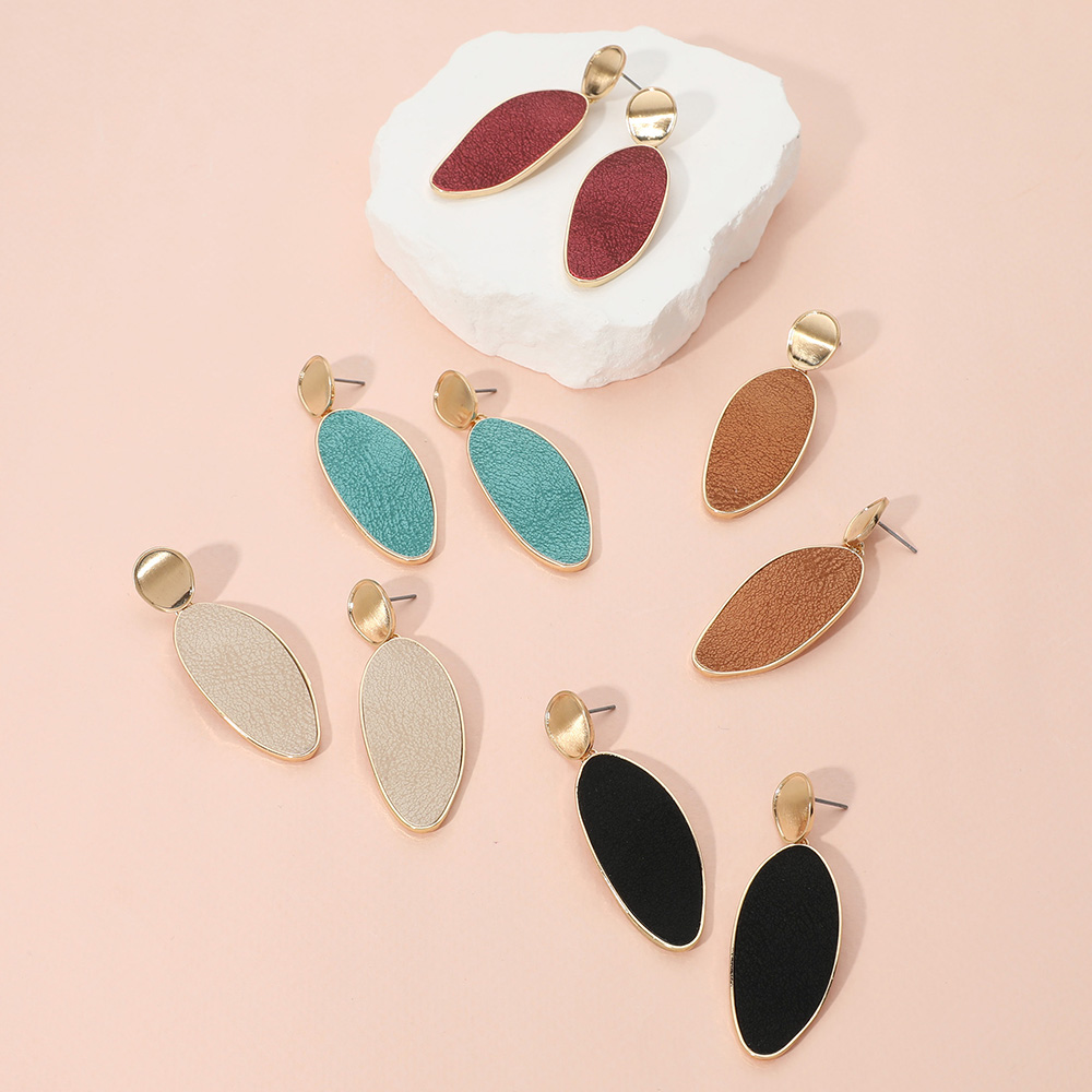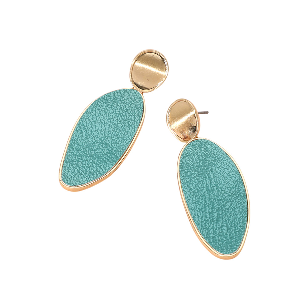 Faux Leather Wavy Marquise Plate Dangle Earrings