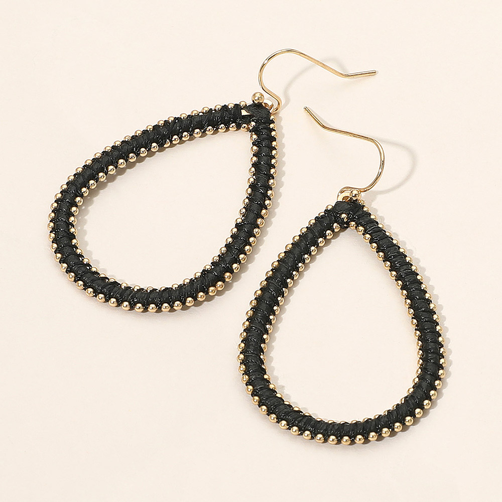 Details • Size : 1.25" X 2.1" • Fish Hook Back • Elevate your everyday style with these teardrop hook earrings featuring a wrapped design and beaded edge detailing. Lightweight and versatile, they’re perfect for casual outfits, workwear, or as a thoughtful gift with a handcrafted feel. • Lead and Nickel Compliant