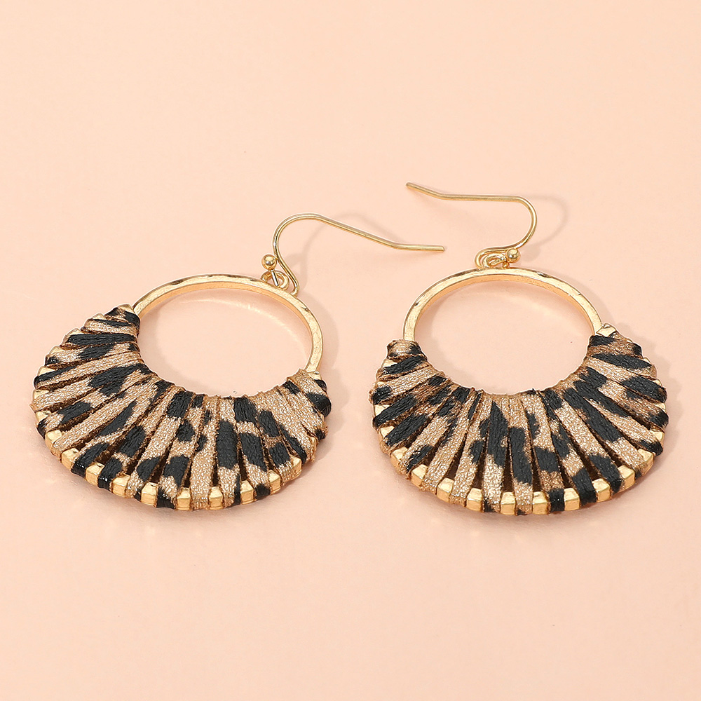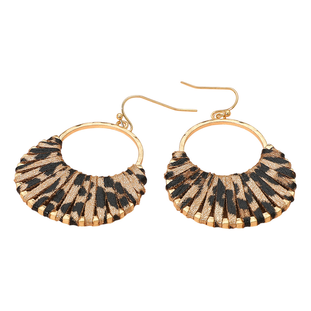 • Chic hoop earrings designed with a bold fan-shaped faux leather wrapped accent that adds movement and style to any outfit. Perfect for making a statement, these earrings offer a fashionable touch suitable for both casual wear and special occasions, enhancing any accessory collection effortlessly.
