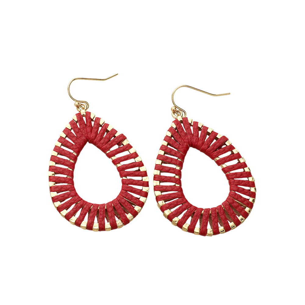 Faux Leather Wrapped Teardrop Dangle Earrings