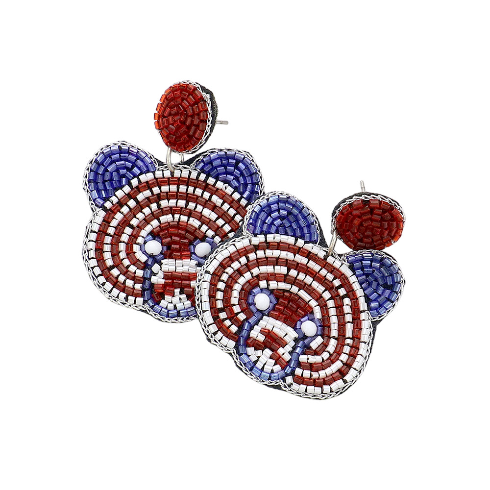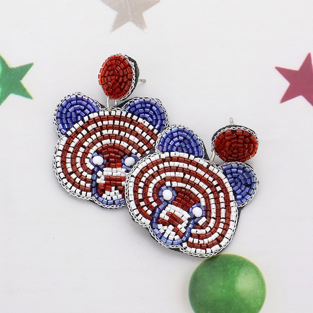 Felt Back American USA Flag Bear Beaded Dangle Earrings