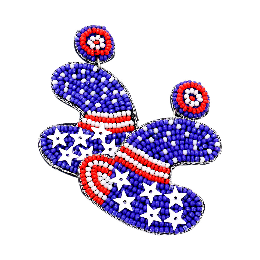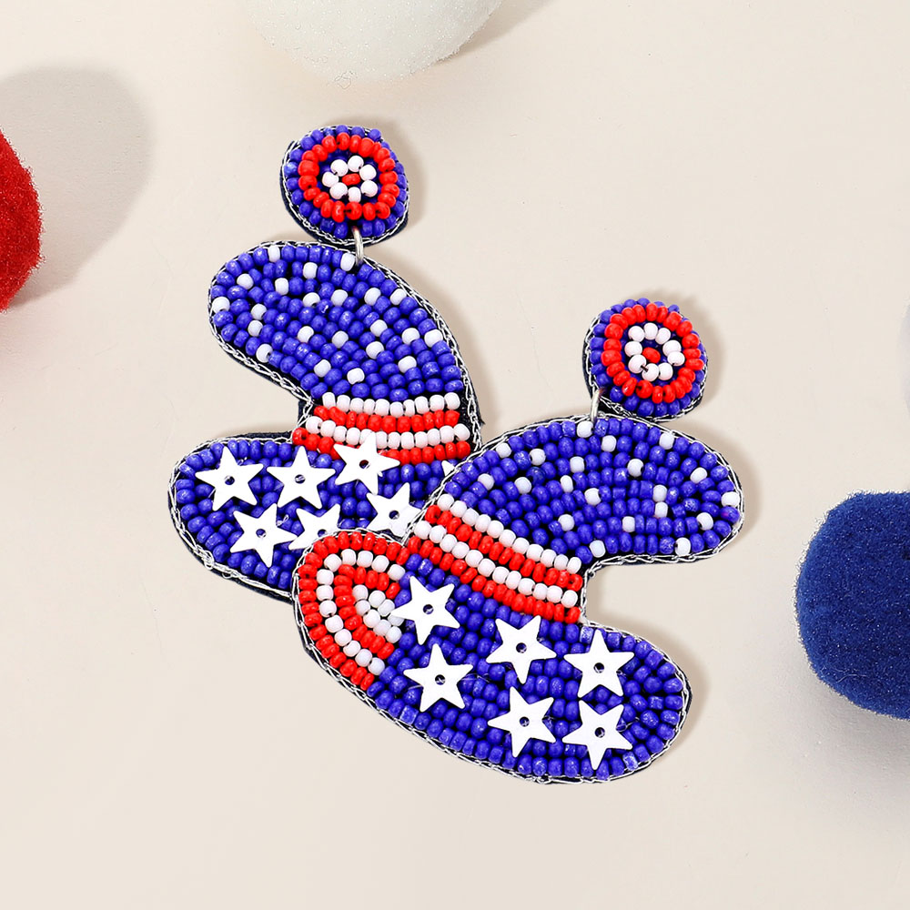 Felt Back American USA Flag Cowboy Hat Beaded Dangle Earrings