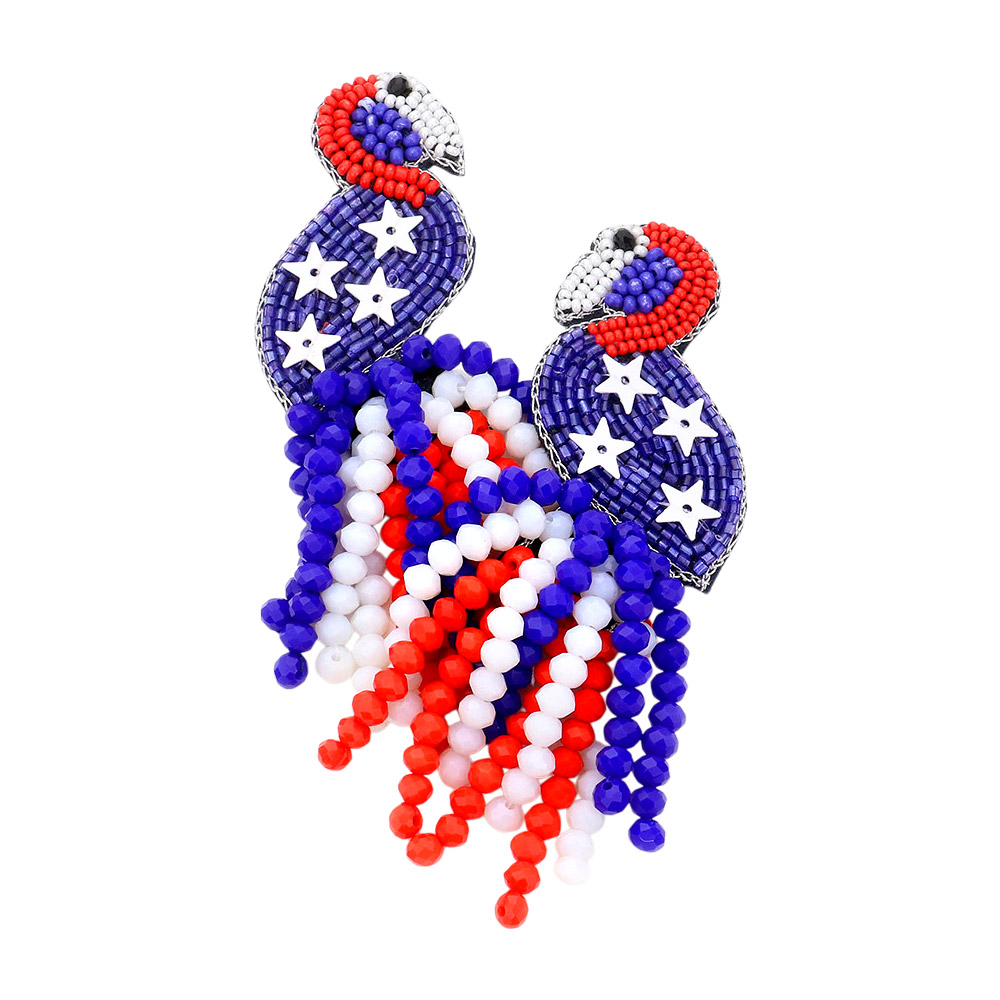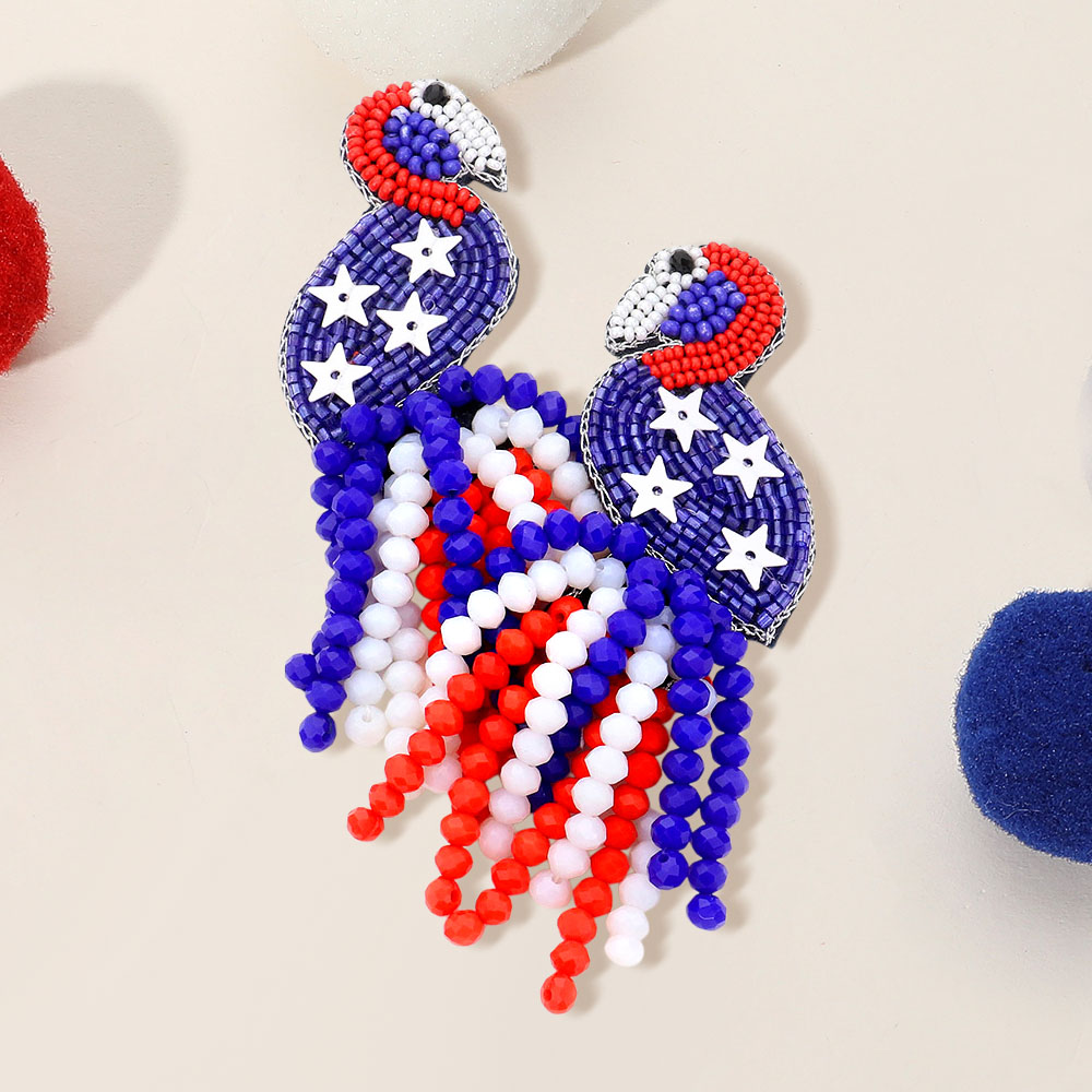 Felt Back American USA Flag Flamingo Beaded Beads Tassel Earrings