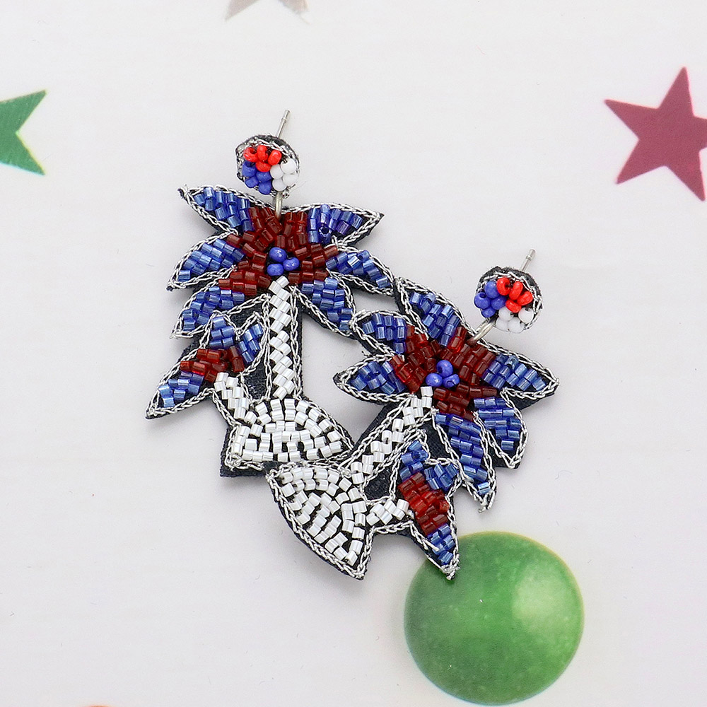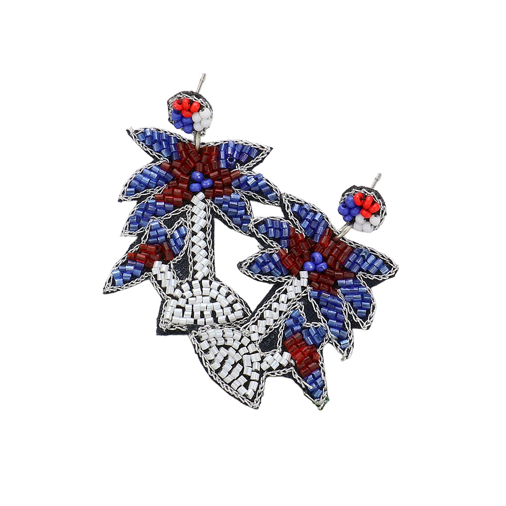 Felt Back American USA Flag Palm Tree Beaded Dangle Earrings