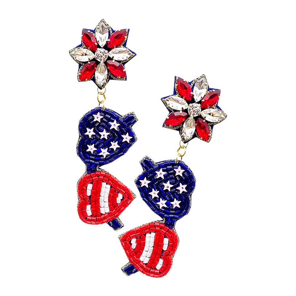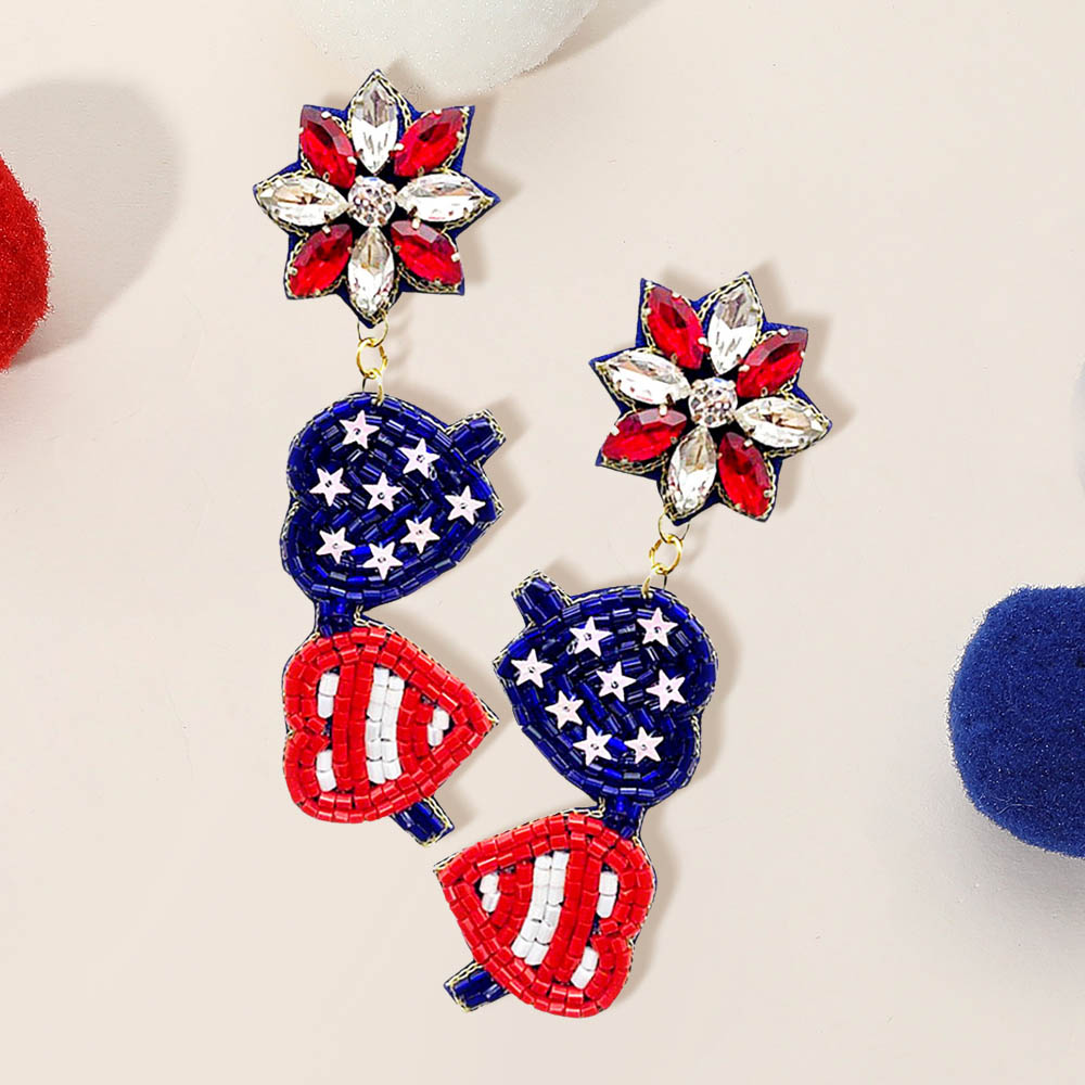 Glittered American USA Flag Triple Rhombus Layered Dangle Earrings