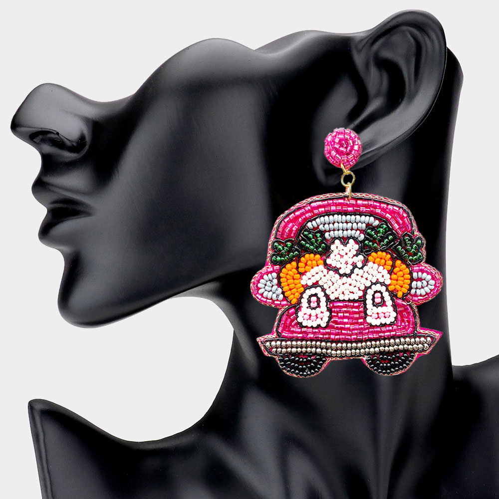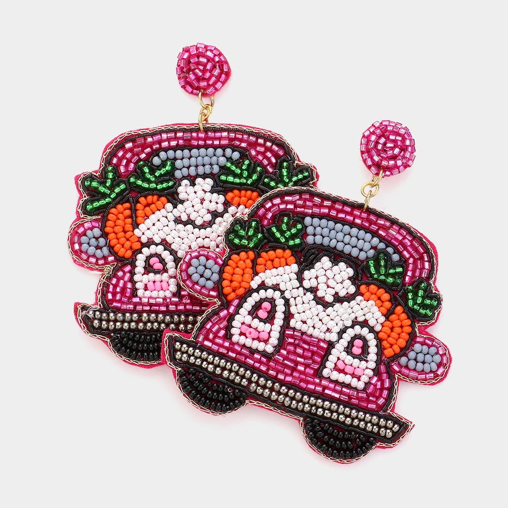 Felt Back Beaded Easter Bunny Carrot Pointed Car Dangle Earrings