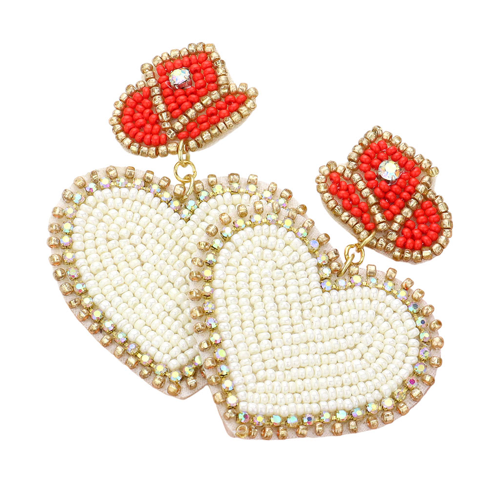 Felt Back Beaded Hat Heart Link Dangle Earrings