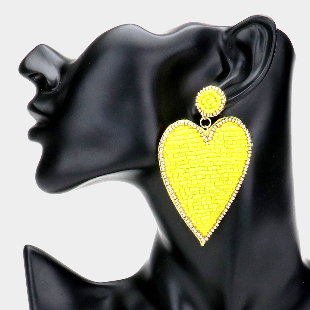 Felt Back Heart Accented Beaded Champagne Dangle Earrings
