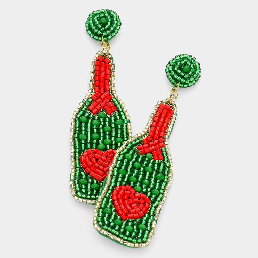 Felt Back Beaded Heart Pointed Champagne Dangle Earrings