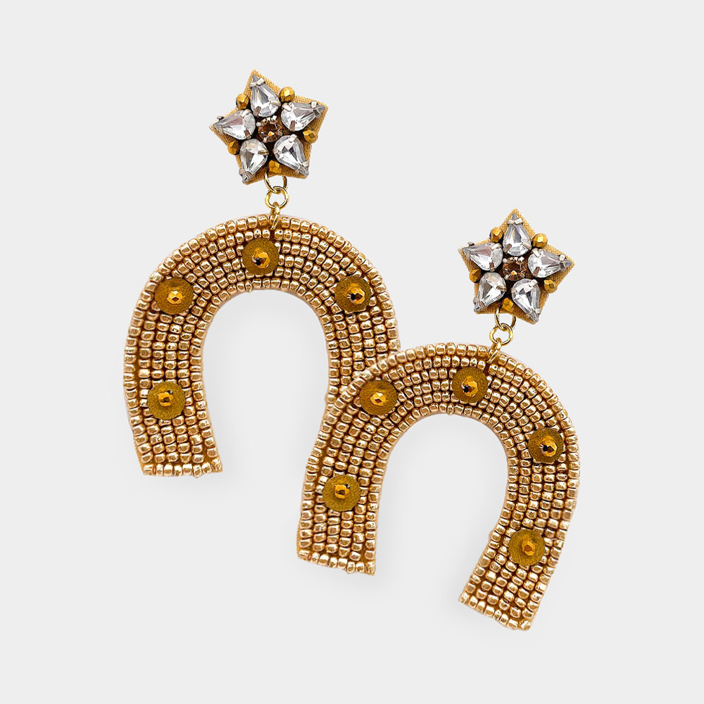Felt Back Beaded Horseshoe Derby Dangle Earrings