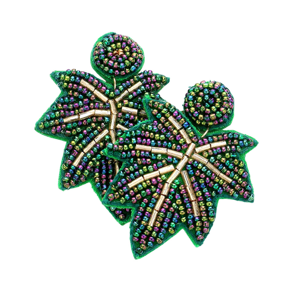 Details • Size : 2" X 2.5" • Post Back • Celebrate bold style with handmade leaf beaded earrings featuring intricate detailing and vibrant flair. Perfect for festivals, parties, or making a statement, these earrings add unique charm to any outfit. • Lead and Nickel Compliant • Made In India