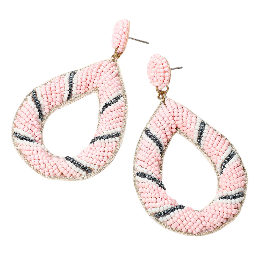 Felt Back Beaded Open Teardrop Dangle Earrings