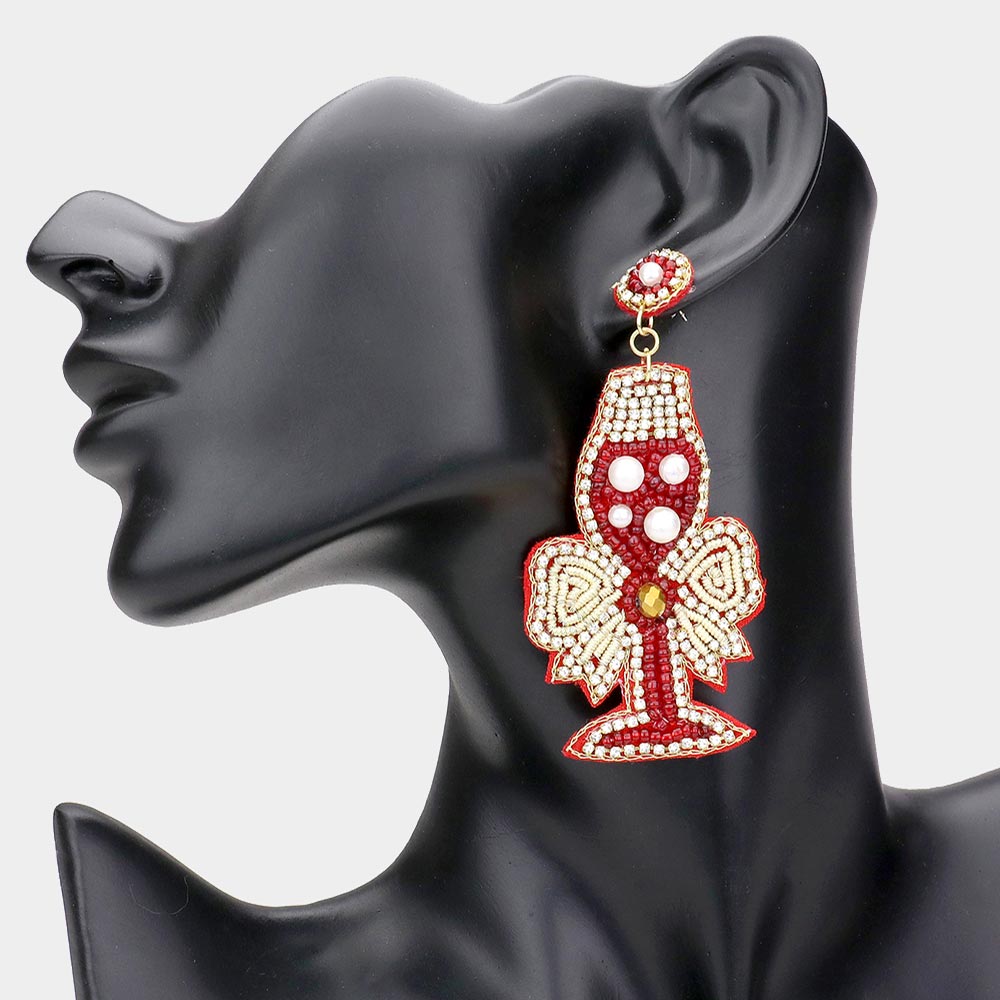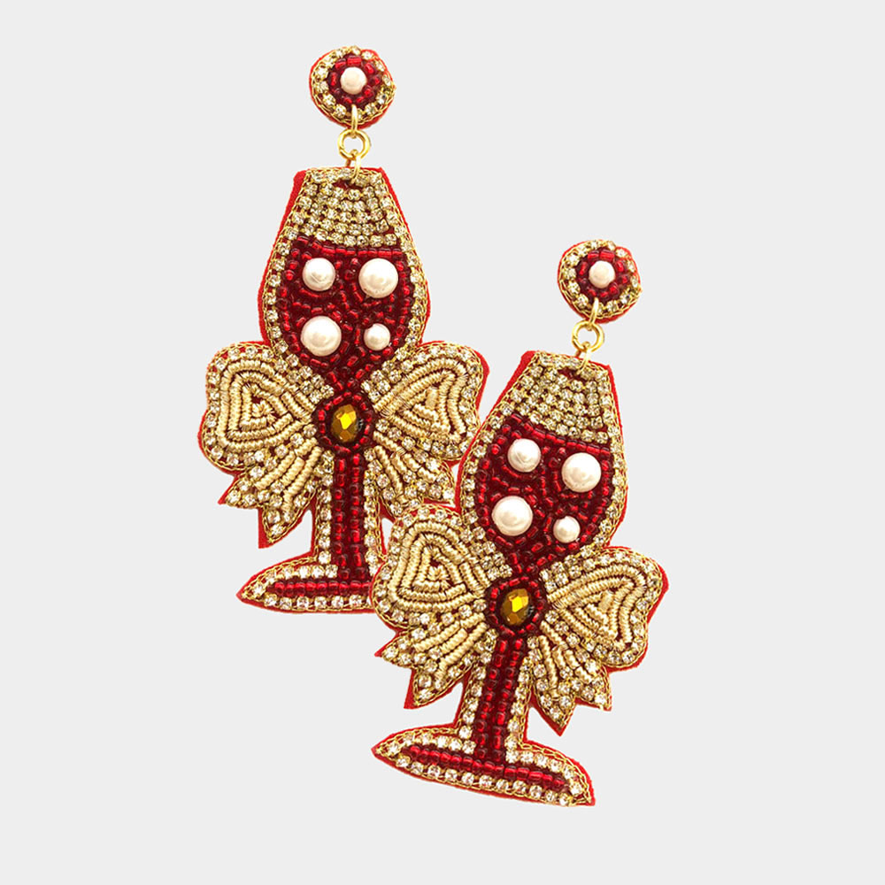 Felt Back Beaded Pearl Embellished Champagne Dangle Earrings