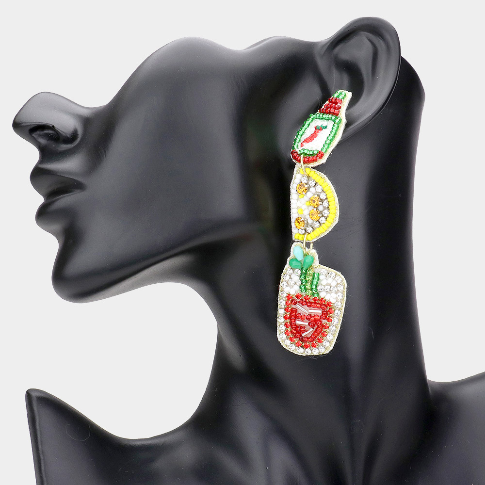 Felt Back Beaded Spicy Sauce Lemon Juice Link Dangle Earrings