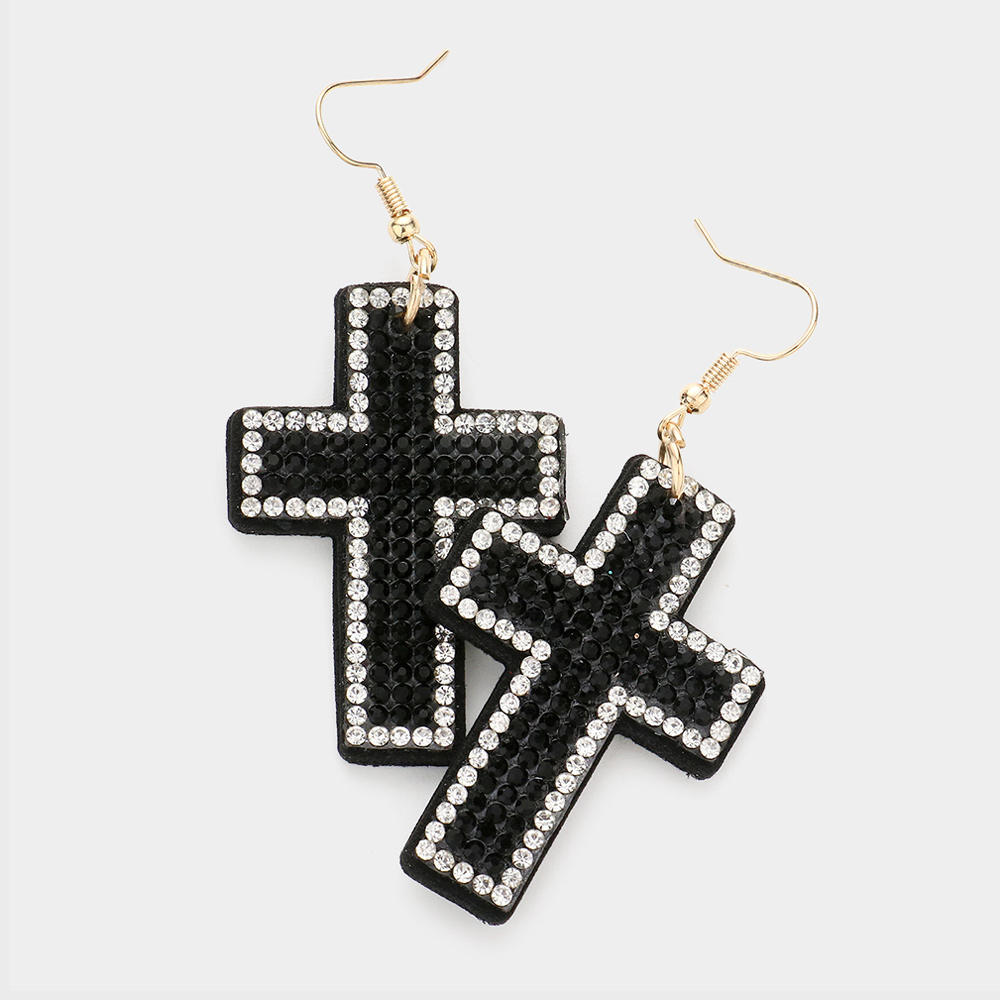 Stainless Steel Stone Paved Cross Pendant Pointed Stretch Bracelet