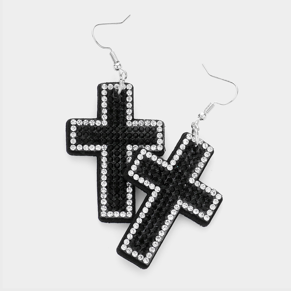 Stone Paved Cross Heart Wing Charm Station Paperclip Chain Bracelet